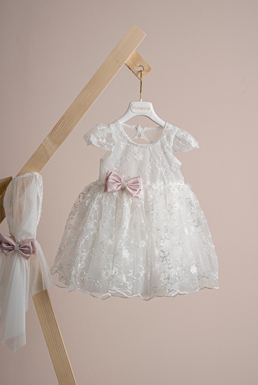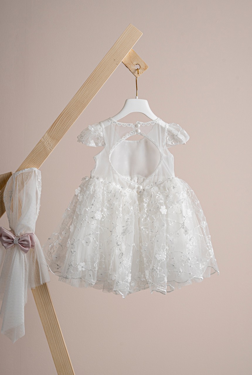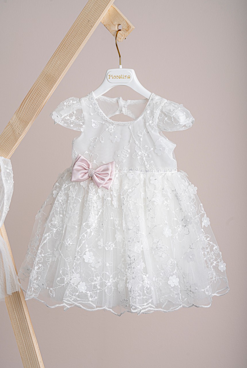Βαπτιστικό φόρεμα Piccolino Patricia Ivory. Φόρεμα από ανάγλυφη δαντέλα με μανικάκι . Στο φόρεμα ξεχωρίζει η εντυπωσιακή ανοιχτή του πλάτη. Το ντεκόρ του φορέματος αποτελείται απο φιογκάκι και αστραφτερό αλλά ταυτόχρονα διακριτικό ζωνάκι. Το φόρεμα συνοδέυεται απο μπαντάνα με ντεκόρ όμοιο με το φόρεμα. Διαθέσιμο σε 4 μεγέθη: 6-12, 12-18, 18-24, 24-36 (εξτρά χρέωση)