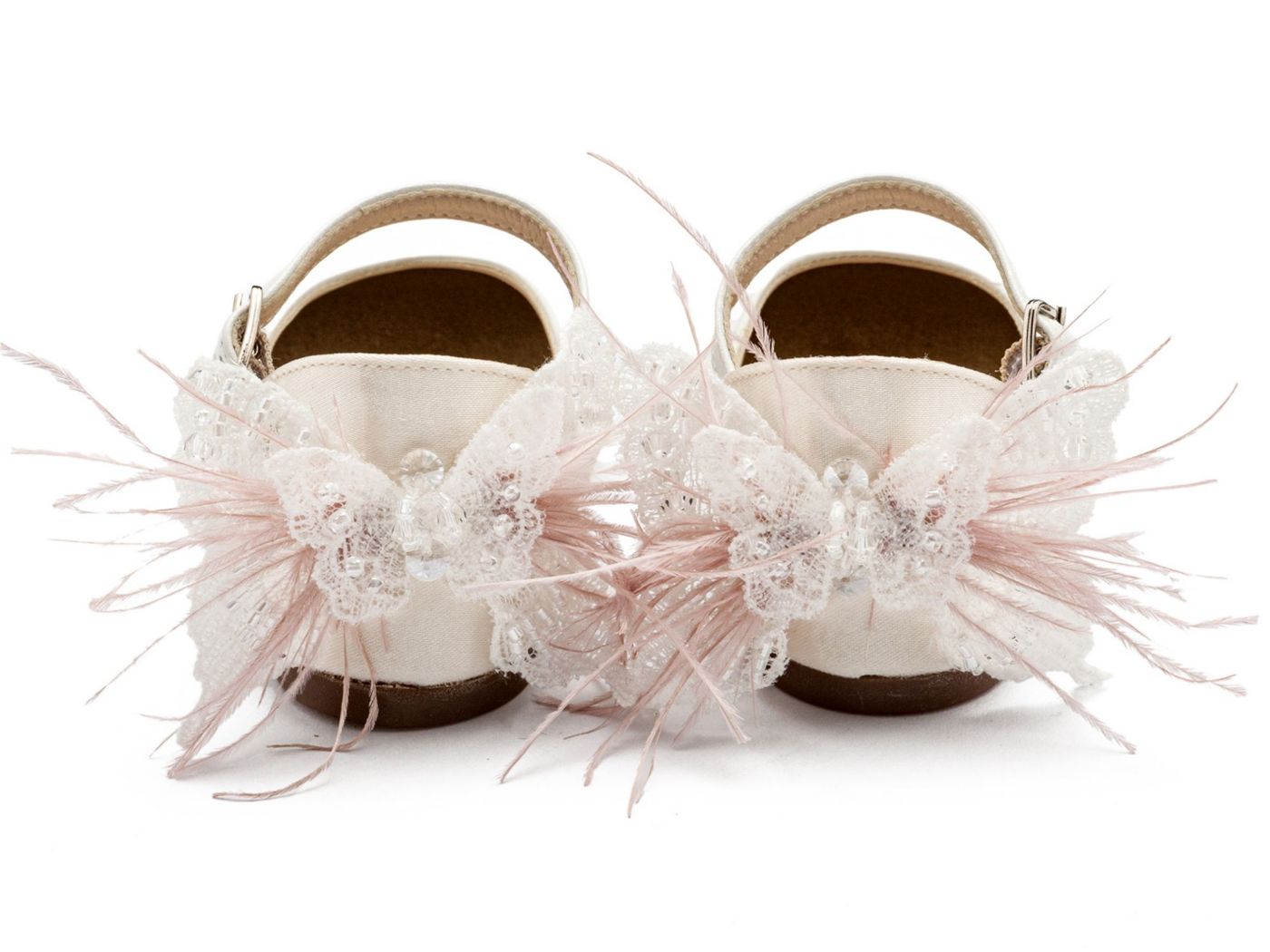 Γαλλικό Γοβάκι με Διακοσμημένη Φτέρνα Πεταλούδα BW4866 Εκρού Ροζ