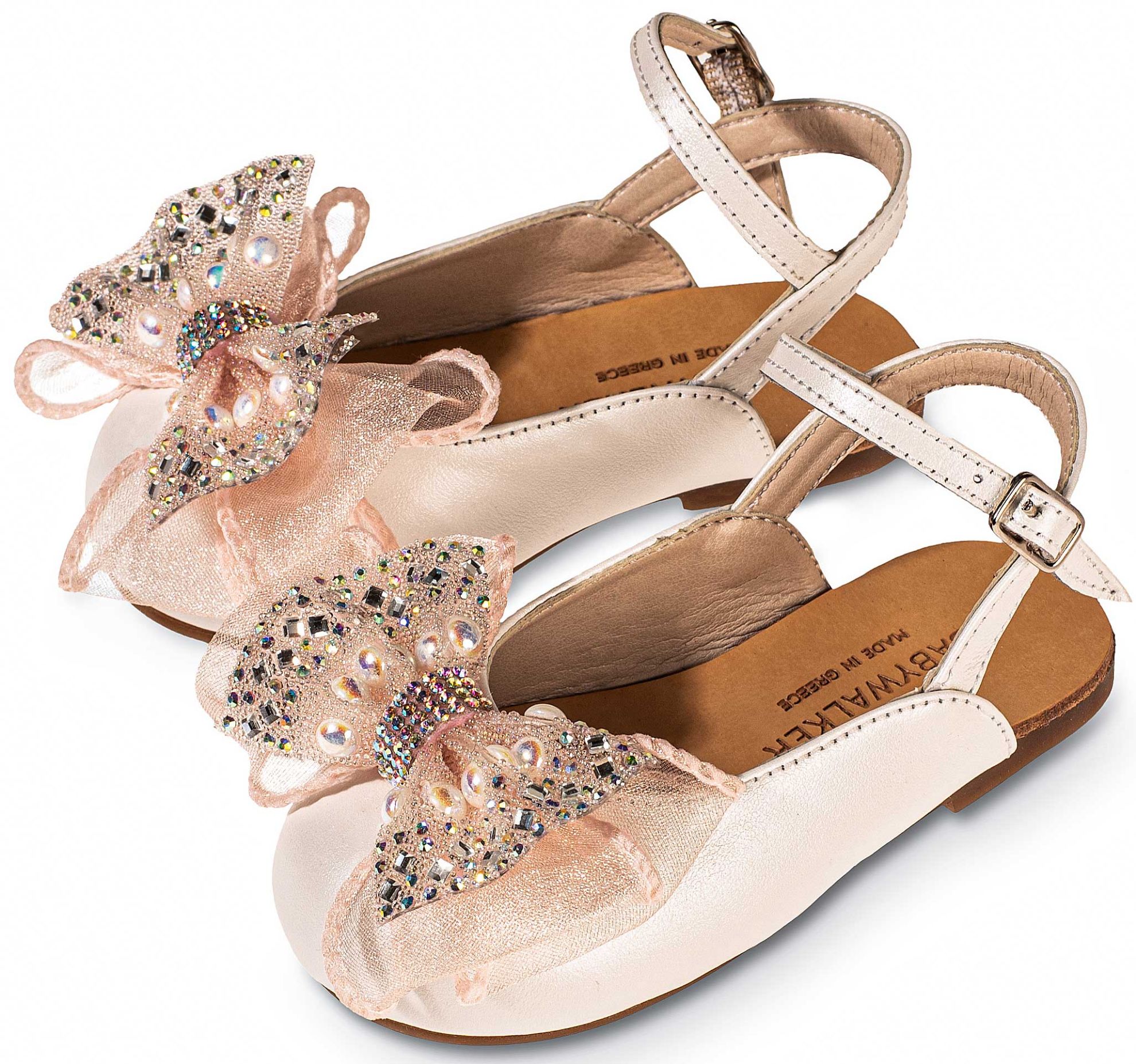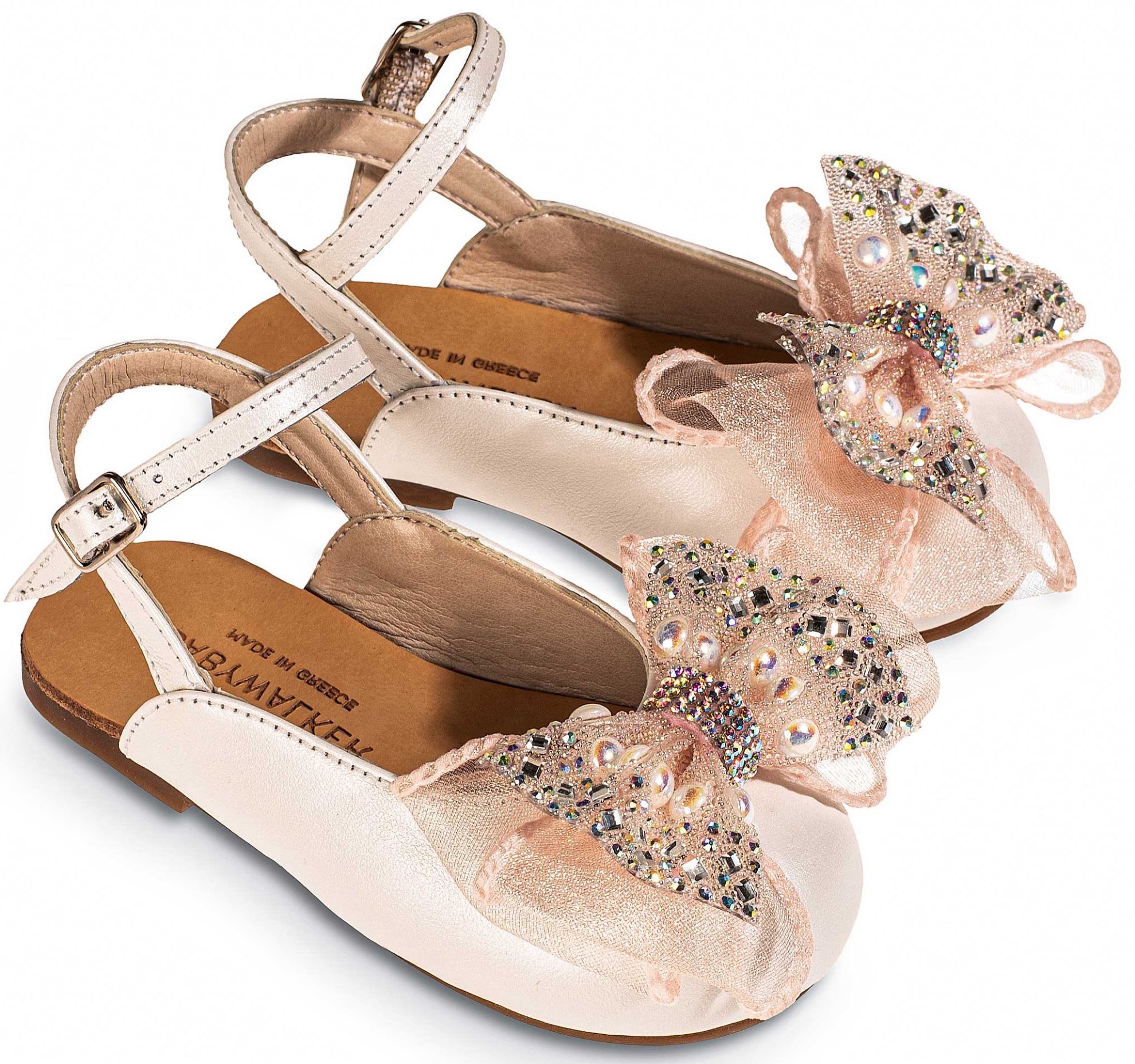 Δερμάτινο Γαλλικό Σαμπό με Φιόγκο Οργάντζας και Στρας σε Εκρού Ροζ Χρώμα