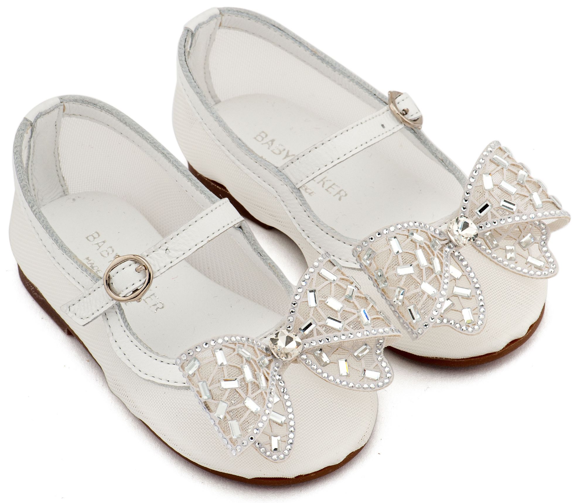 Γοβάκι απο Ύφασμα Φιλντιρέ με Δερμάτινες Λεπτομέρειες και Φιόγκο Στρας σε Λευκό Χρώμα