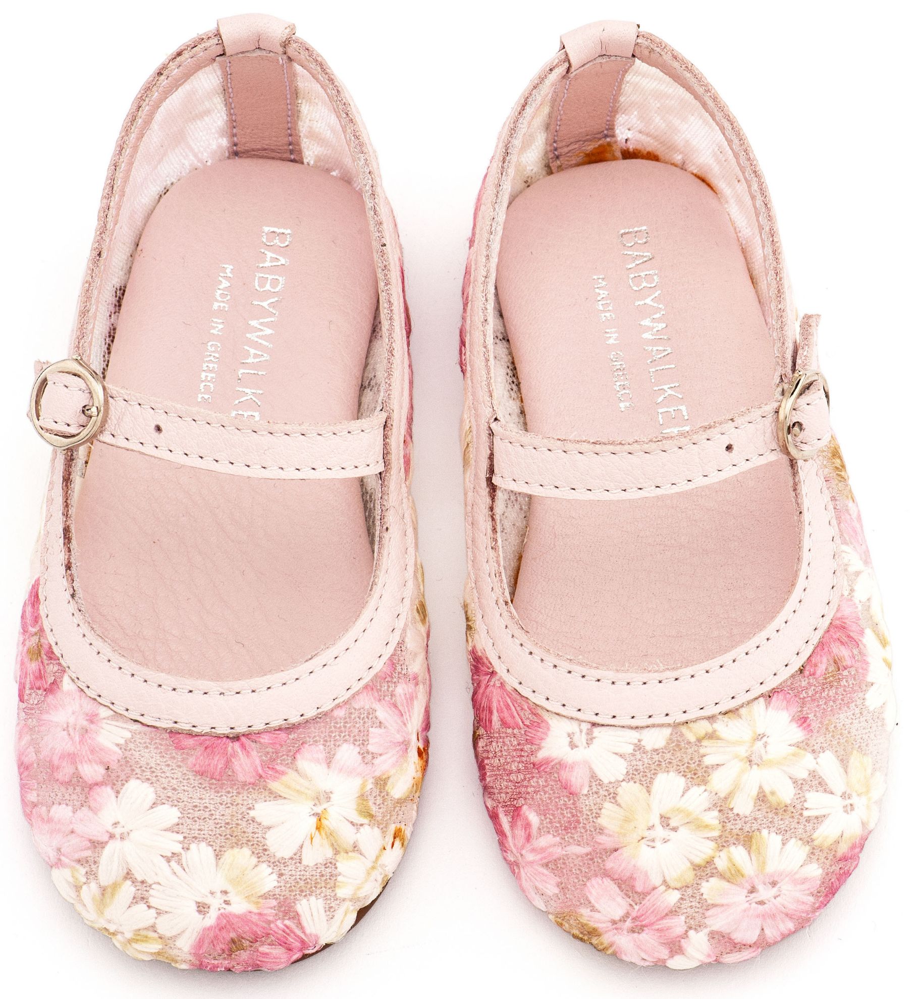 Γοβάκι απο Ύφασμα Φιλντιρέ Λουλούδια με Δερμάτινες Λεπτομέρειες σε Ροζ Φλοράλ Χρώμα