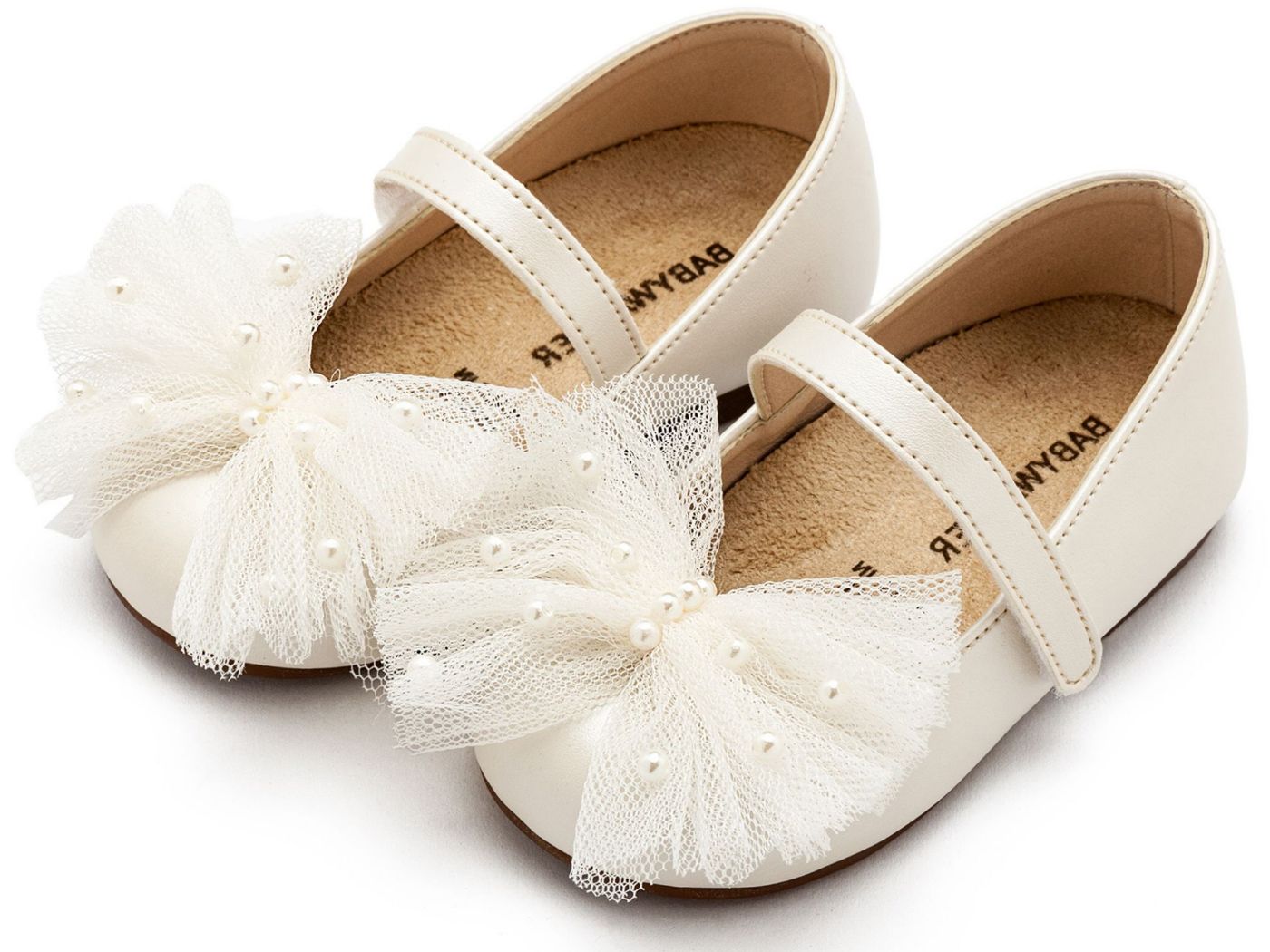 Γοβάκι με Τούλινο Χειροποίητο Φιόγκο και Πέρλες σε Εκρού Χρώμα