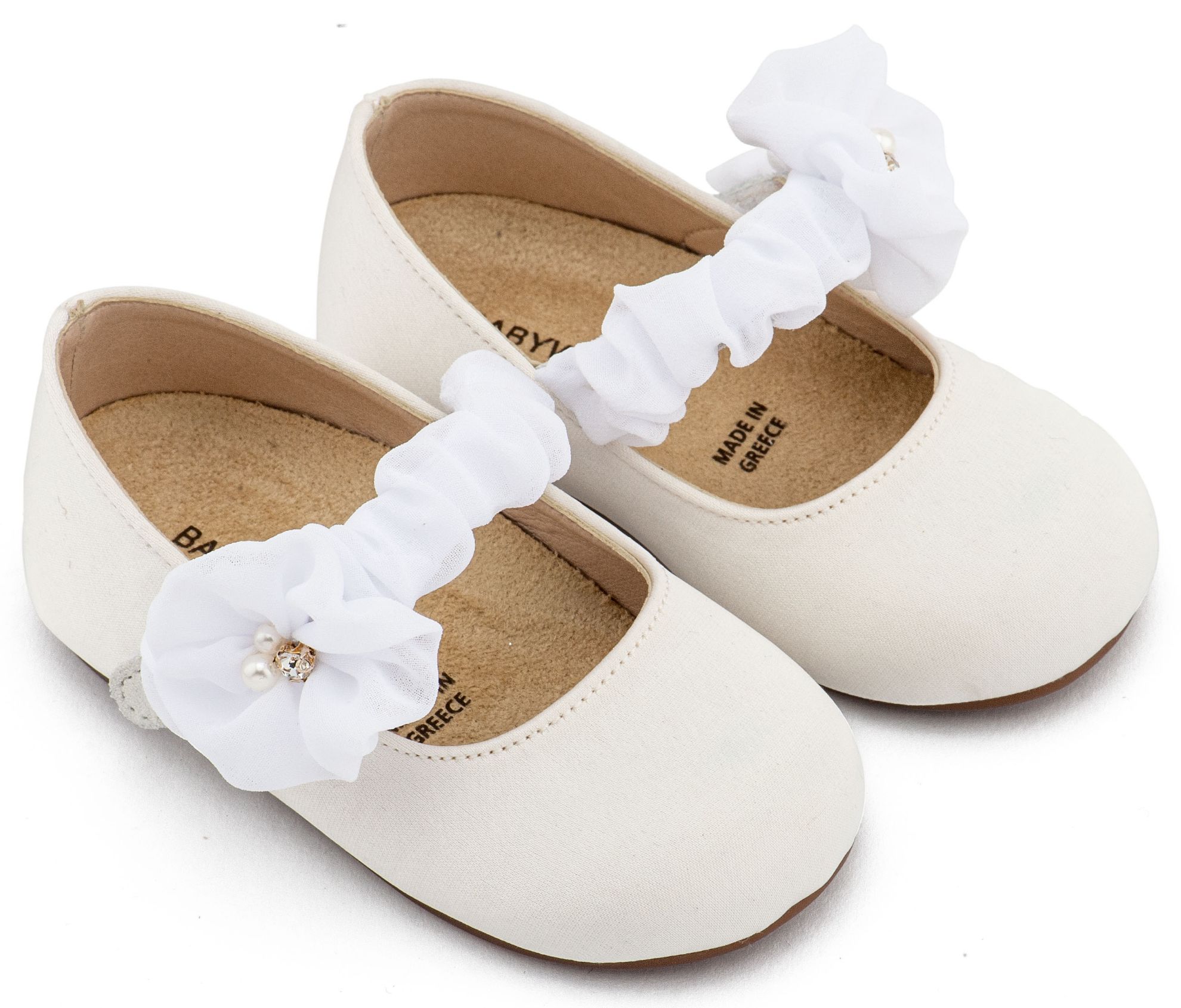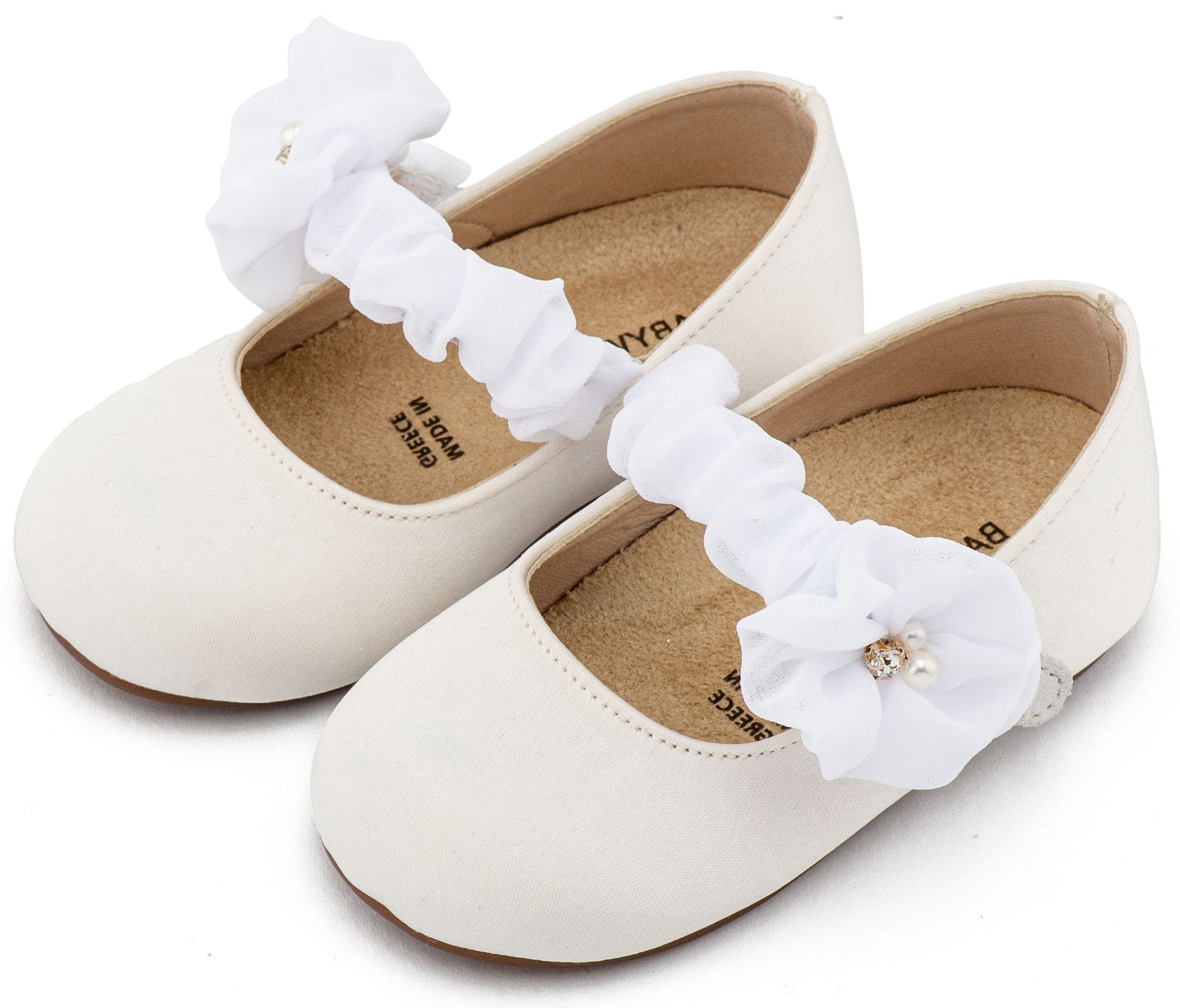 Υφασμάτινο Γοβάκι Μονή Μπαρέτα Χρατς με Υφασμάτινο Διακοσμητικό στη Μπαρέτα σε Λευκό Χρώμα