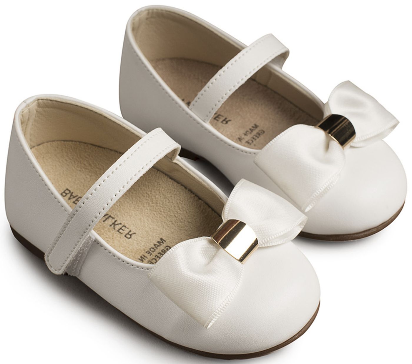 Δερμάτινο Γοβάκι με Satin Φιόγκο και Χρυσή Λεπτομέρεια από Συνθετικό Δέρμα σε Λευκό χρώμα