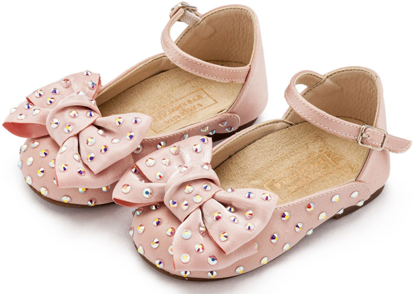 Γαλλικό Γοβάκι από Satin Ύφασμα Φιόγκο Οργάντζας και Στρας Swarovski σε Ροζ Χρώμα