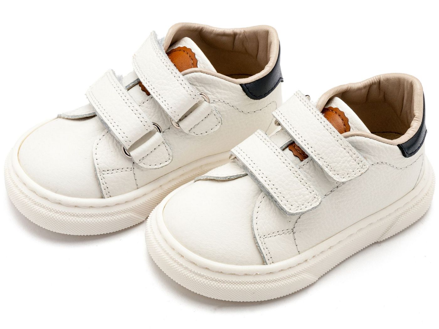 Δερμάτινα Σνίκερ Διπλή Μπαρέτα Χρατς με Λεπτομέρεια Μπλε Πίσω σε Λευκό χρώμα