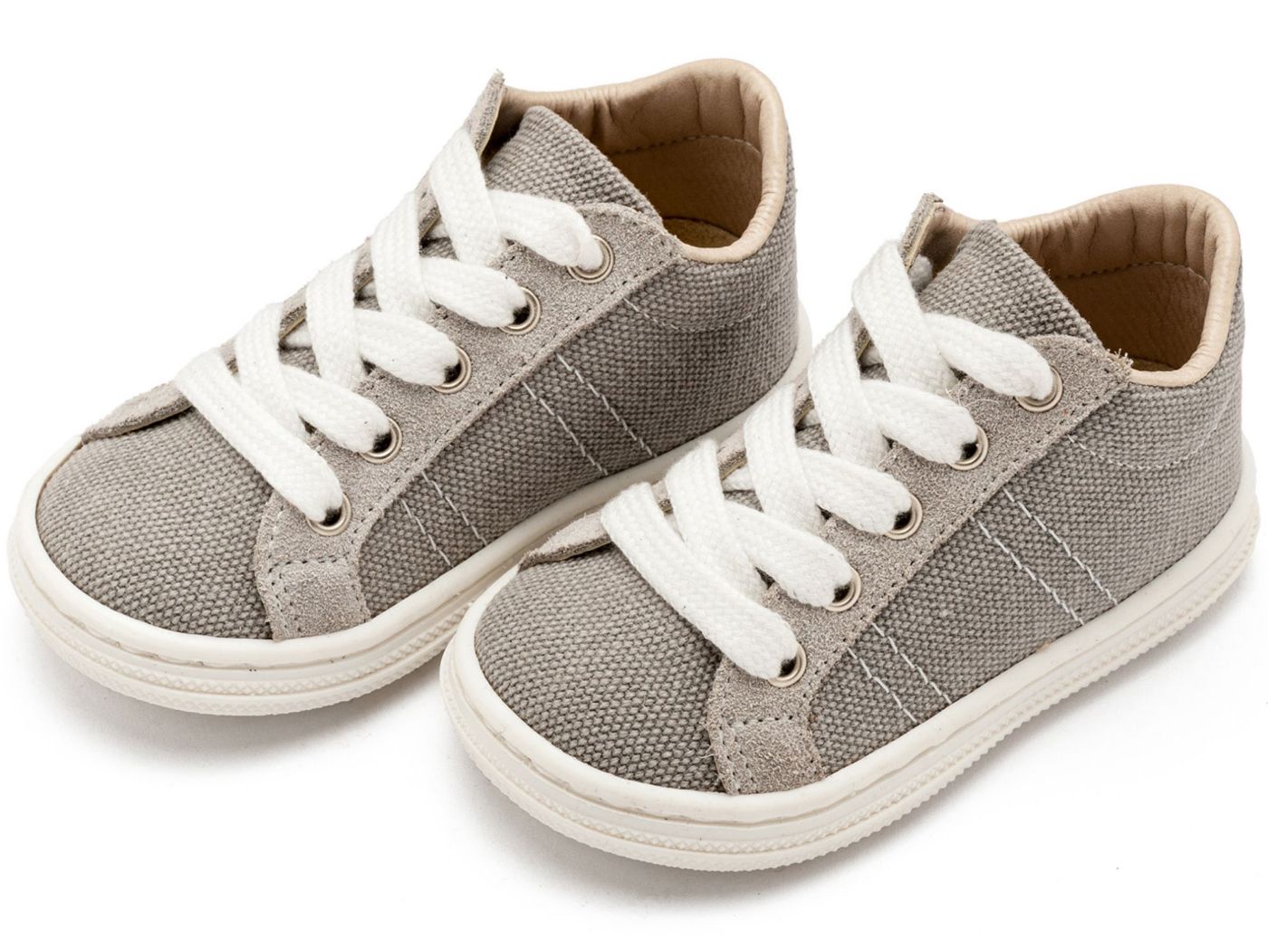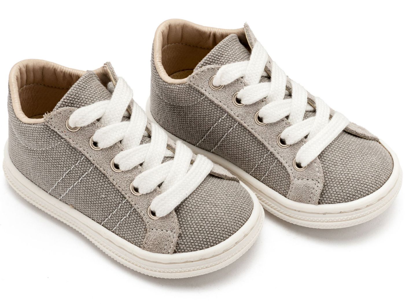 Δίχρωμα Υφασμάτινα Δετά Σνίκερ από Ύφασμα και Δέρμα σε Γκρι Χρώμα