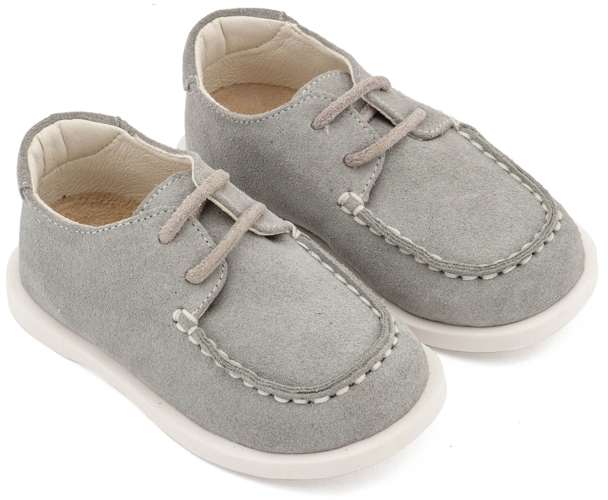 Καστόρινο Δετό Μοκασίνι με Δερμάτινο Κορδόνι σε Γκρι Χρώμα