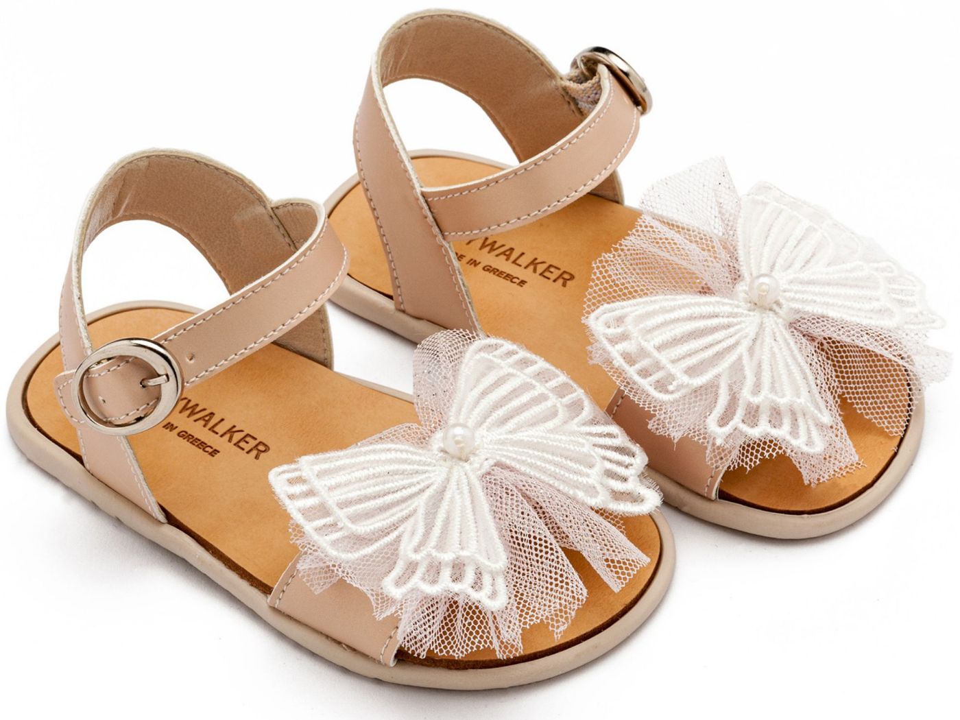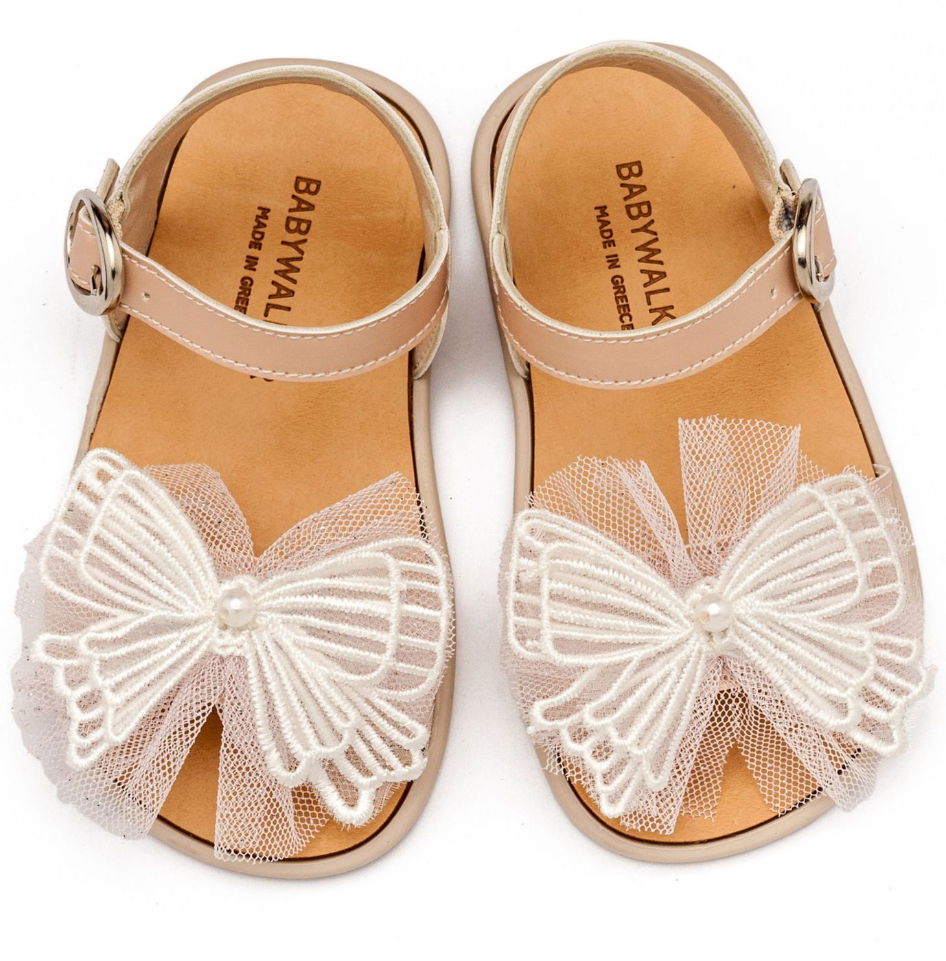 Πέδιλο με Χειροποίητο Διακοσμητικό Πεταλούδα σε Nude Χρώμα