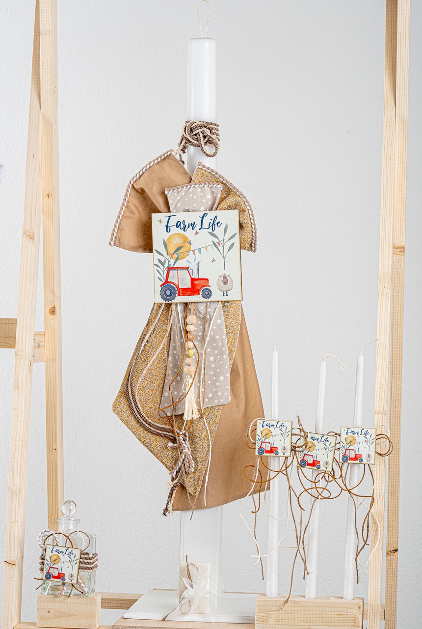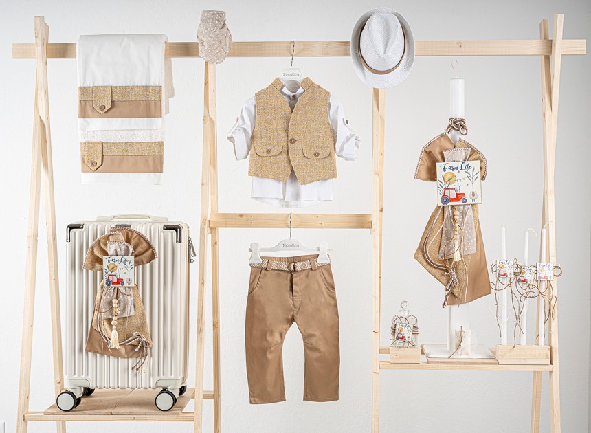 Βαπτιστικό πακέτο Piccolino Alfonso safari περιλαμβάνει κοστούμι ,σετ λαδόπανα, λαμπάδα, λαδοσετ και στολισμένη βαλίτσα CREAM