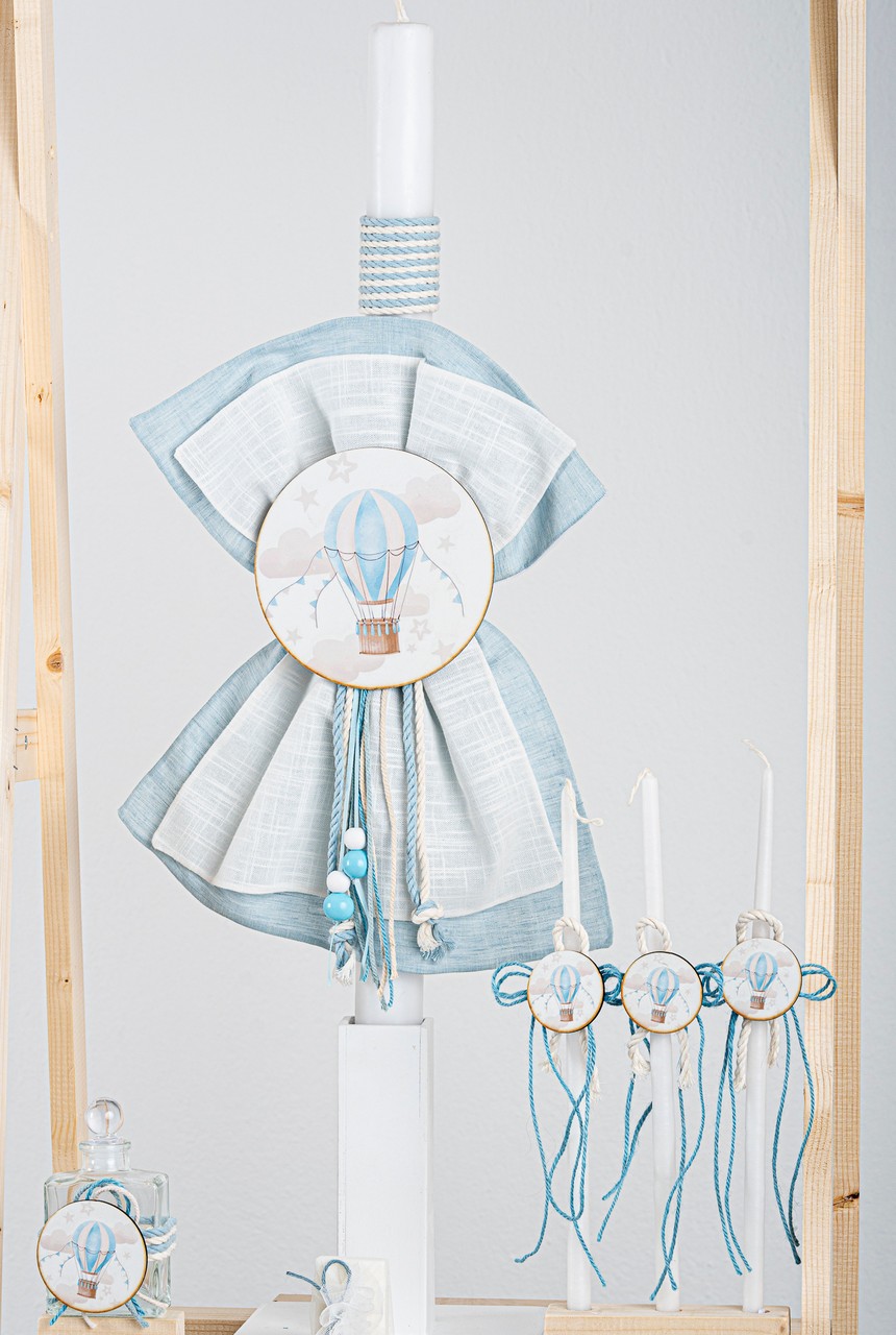 Βαπτιστικό πακέτο Piccolino Emanuel ciele περιλαμβάνει κοστούμι ,σετ λαδόπανα, λαμπάδα, λαδοσετ και στολισμένη βαλίτσα lightblue