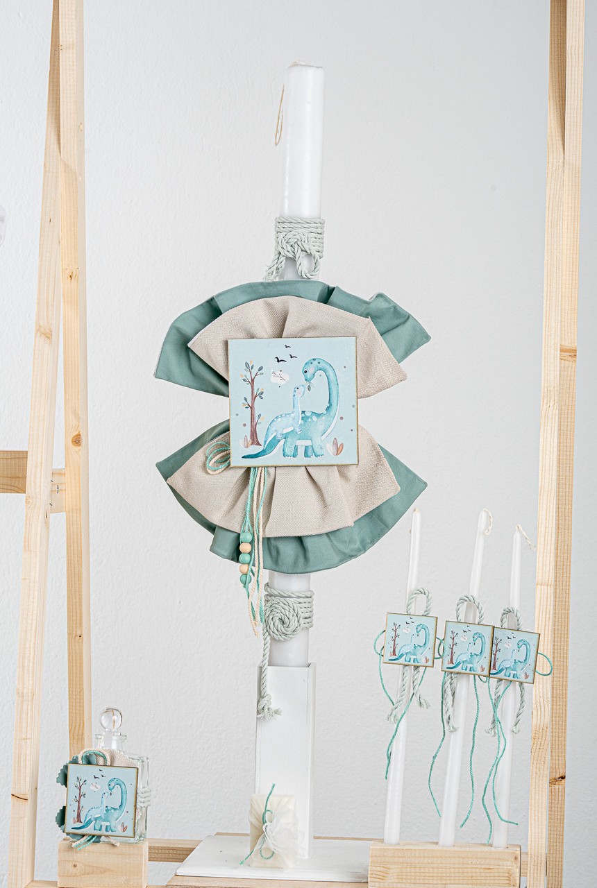 Βαπτιστικό πακέτο Piccolino Gustavo mint περιλαμβάνει κοστούμι ,σετ λαδόπανα, λαμπάδα, λαδοσετ και στολισμένη βαλίτσα mint