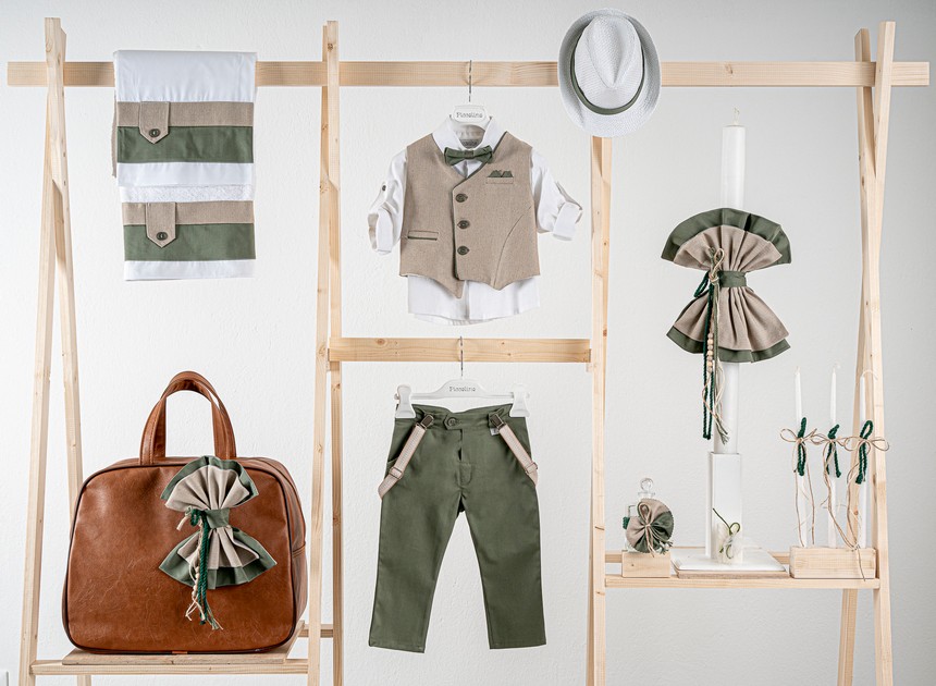 Πακέτο βάπτισης για αγόρι Piccolino Gustavo olive