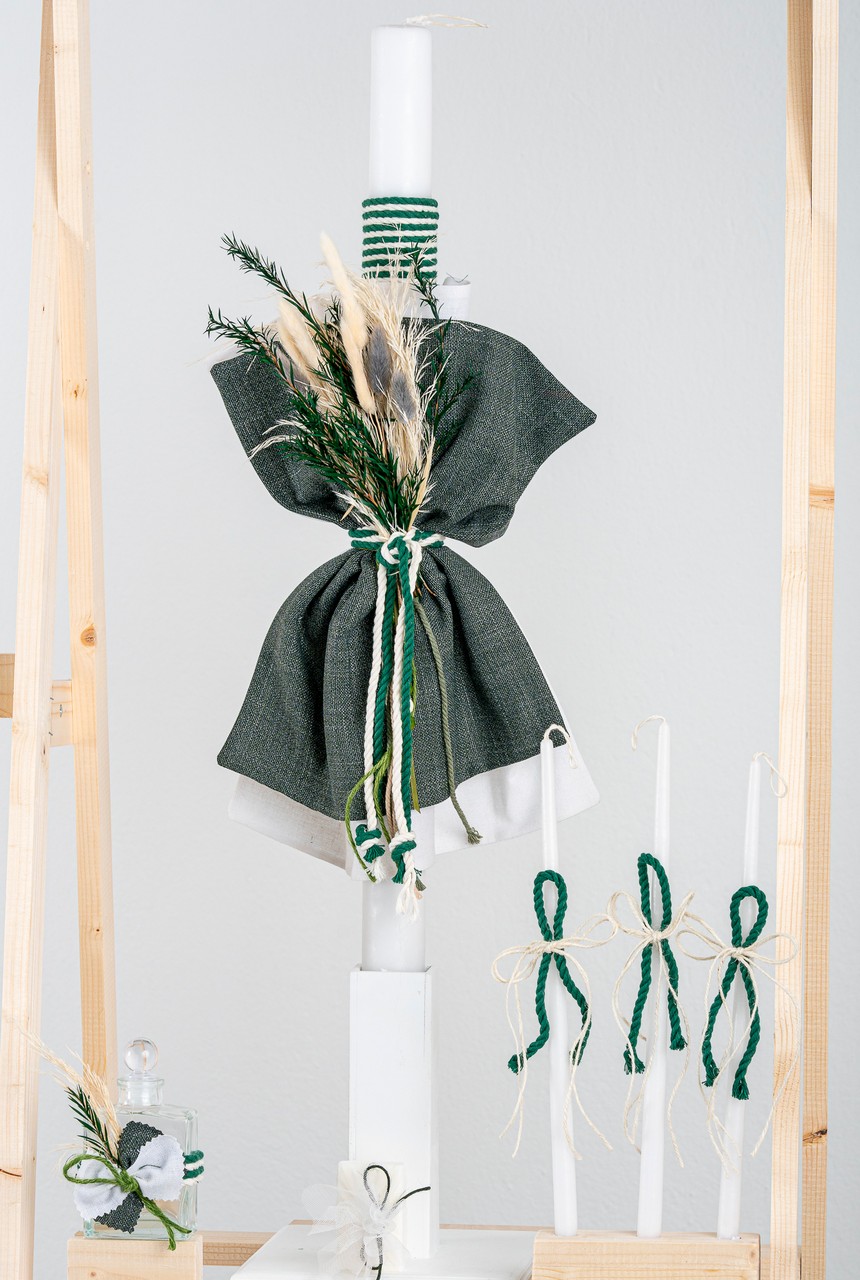Βαπτιστικό πακέτο Piccolino Jose white περιλαμβάνει κοστούμι ,σετ λαδόπανα, λαμπάδα, λαδοσετ και στολισμένη τσάντα λευκή