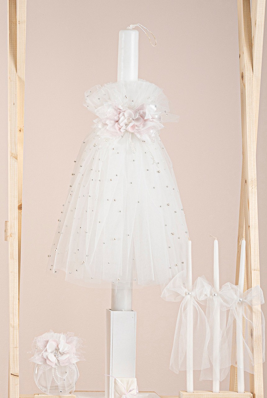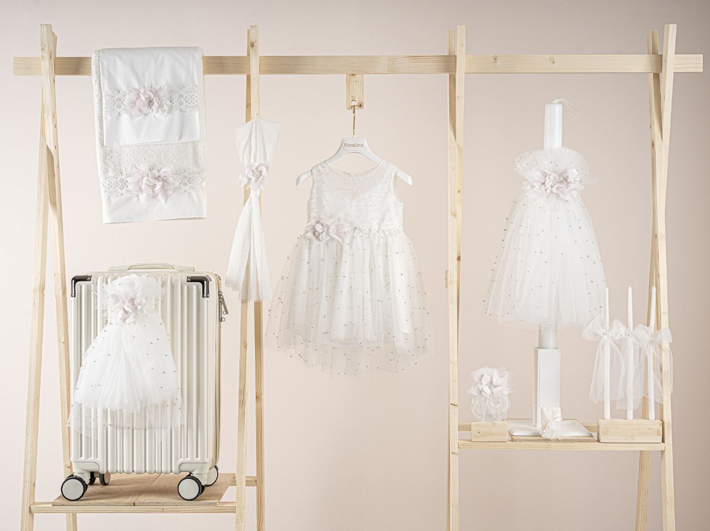 Βαπτιστικό πακέτο Piccolino Salina ivory περιλαμβάνει φόρεμα ,σετ λαδόπανα, λαμπάδα, λαδοσετ και στολισμένη βαλίτσα ecru