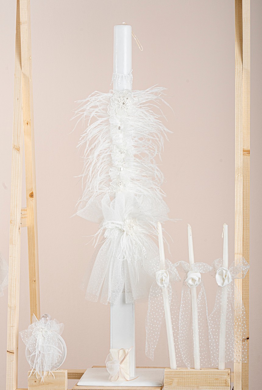 Βαπτιστικό πακέτο Piccolino Silvia ivory περιλαμβάνει φόρεμα ,σετ λαδόπανα, λαμπάδα, λαδοσετ και στολισμένo καλάθι