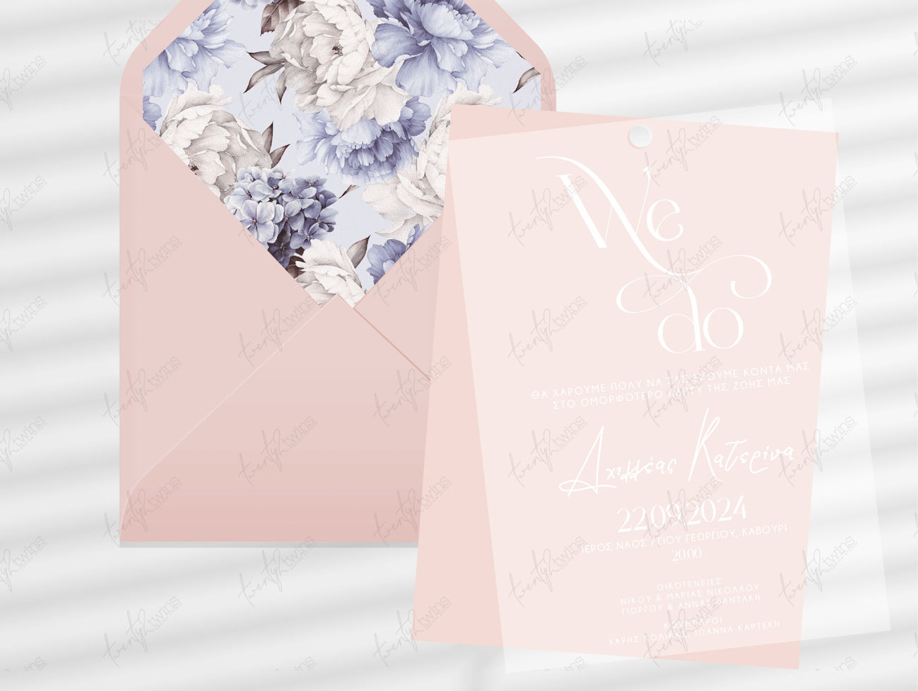 ΠΡΟΣΚΛΗΤΗΡΙΟ ΓΑΜΟΥ ΜΠΛΕ FLORAL