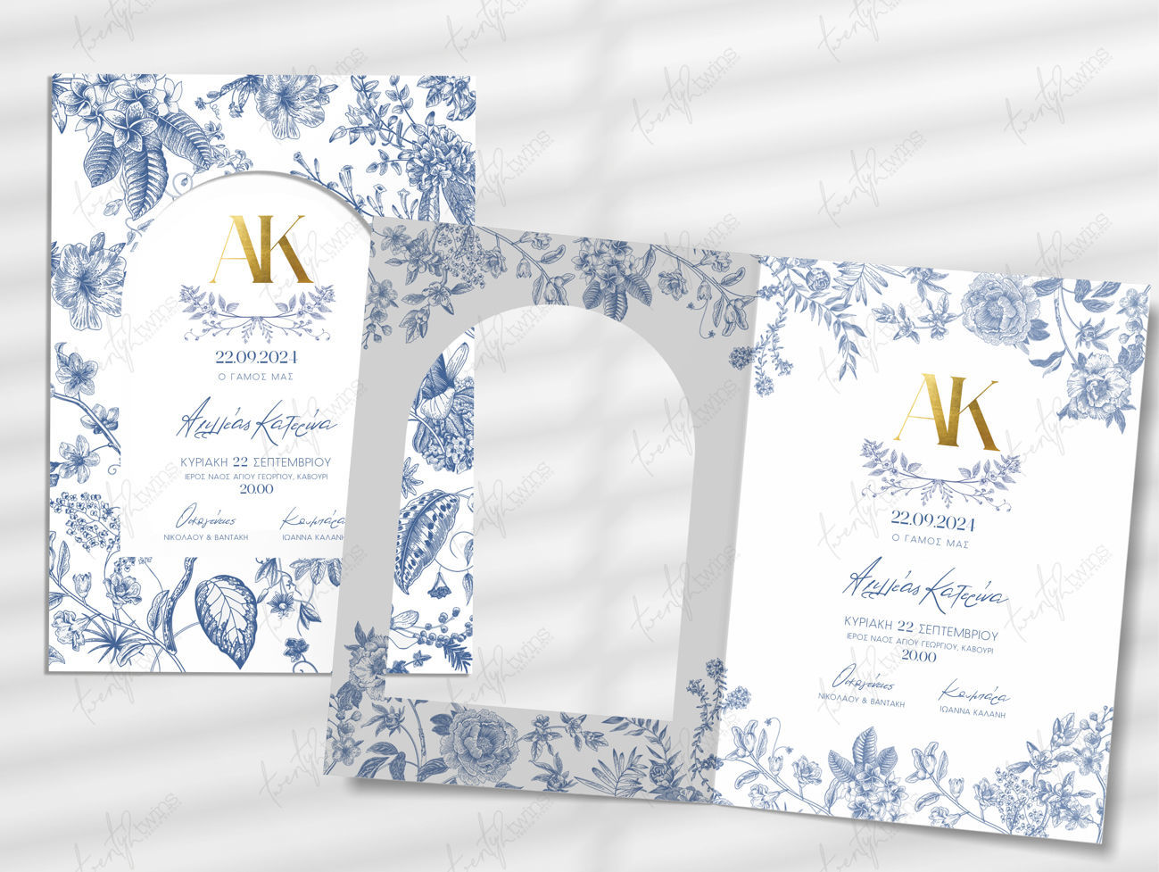 ΠΡΟΣΚΛΗΤΗΡΙΟ ΓΑΜΟΥ ΣΙΕΛ-ΧΡΥΣΟ FLORAL 22T26