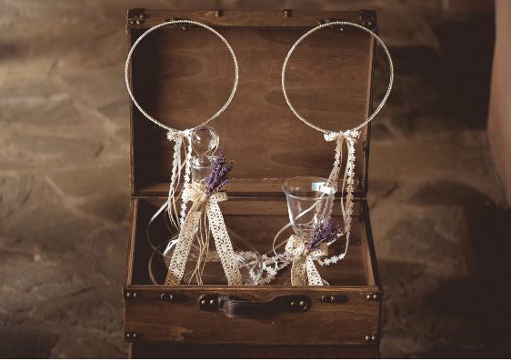 Δίσκος μπαούλο (διαστάσεις 34,5×29,5×12), καράφα κρυστάλλινη (το σχήμα της καράφας έχει αντικατασταθεί με αυτή της εικόνας 02, 03), κρυστάλλινο ποτήρι . Αν θέλετε μπορείτε να επιλέξετε κουτάκι ή μαξιλαράκι για τις βέρες που θα βρείτε σε αντίστοιχη κατηγορία.
