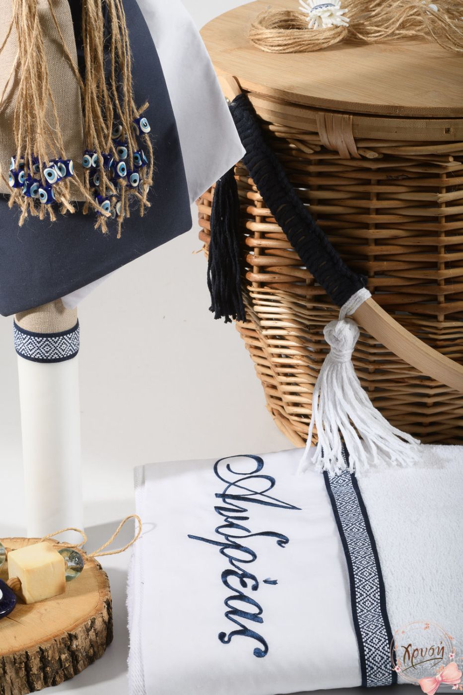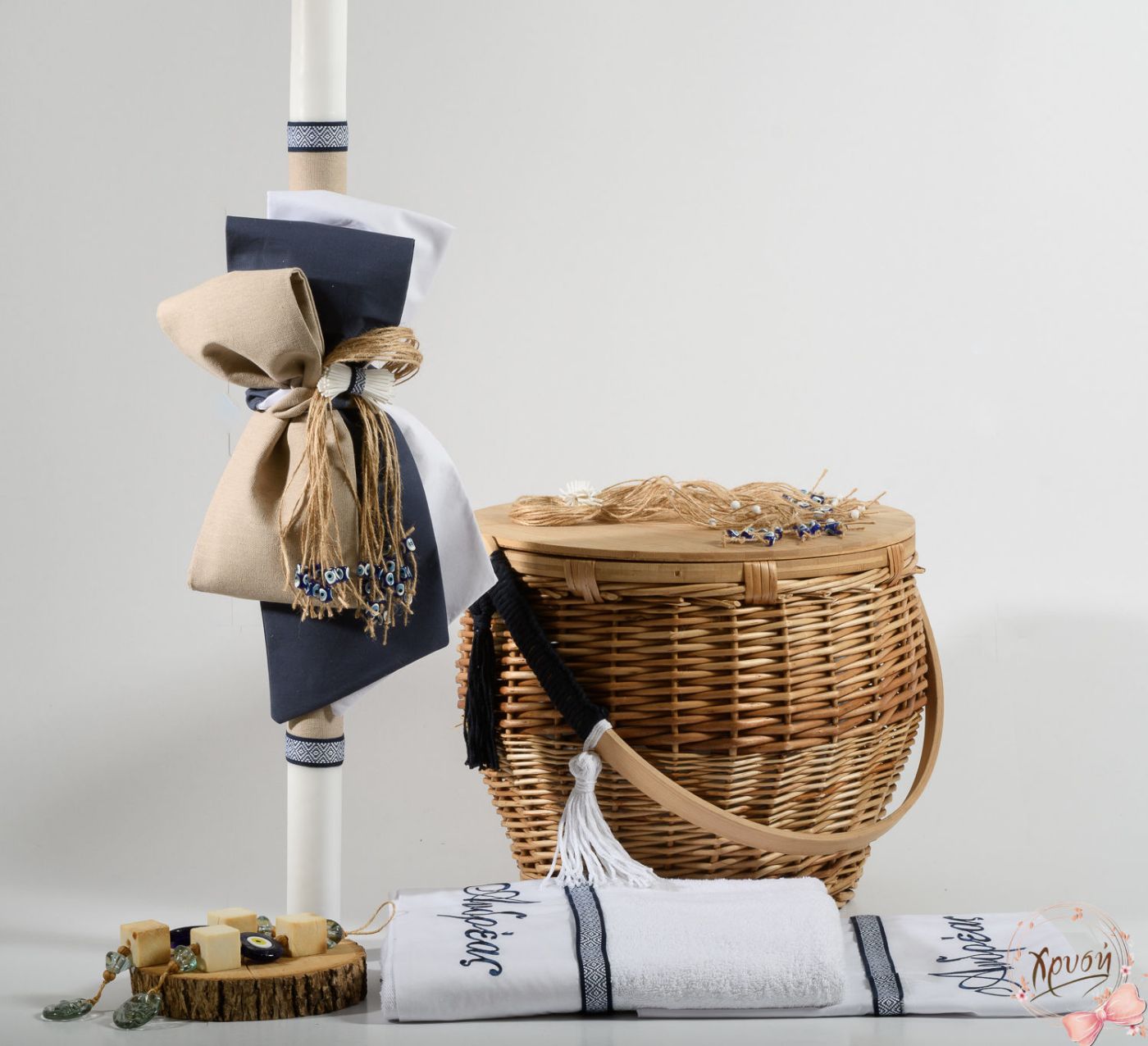 Σετ νονού με ιδιαίτερο καλάθι αποθήκευσης και διακόσμηση με "ματάκια"