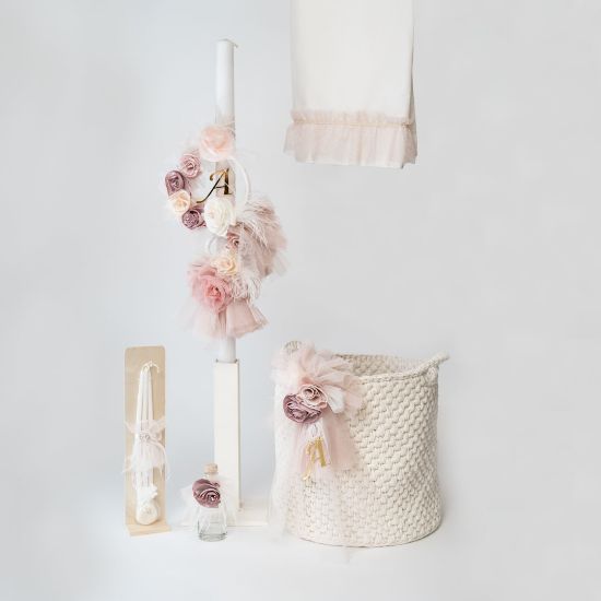 Σετ νονού ροζ -χρυσό με χρυσά φύλλα