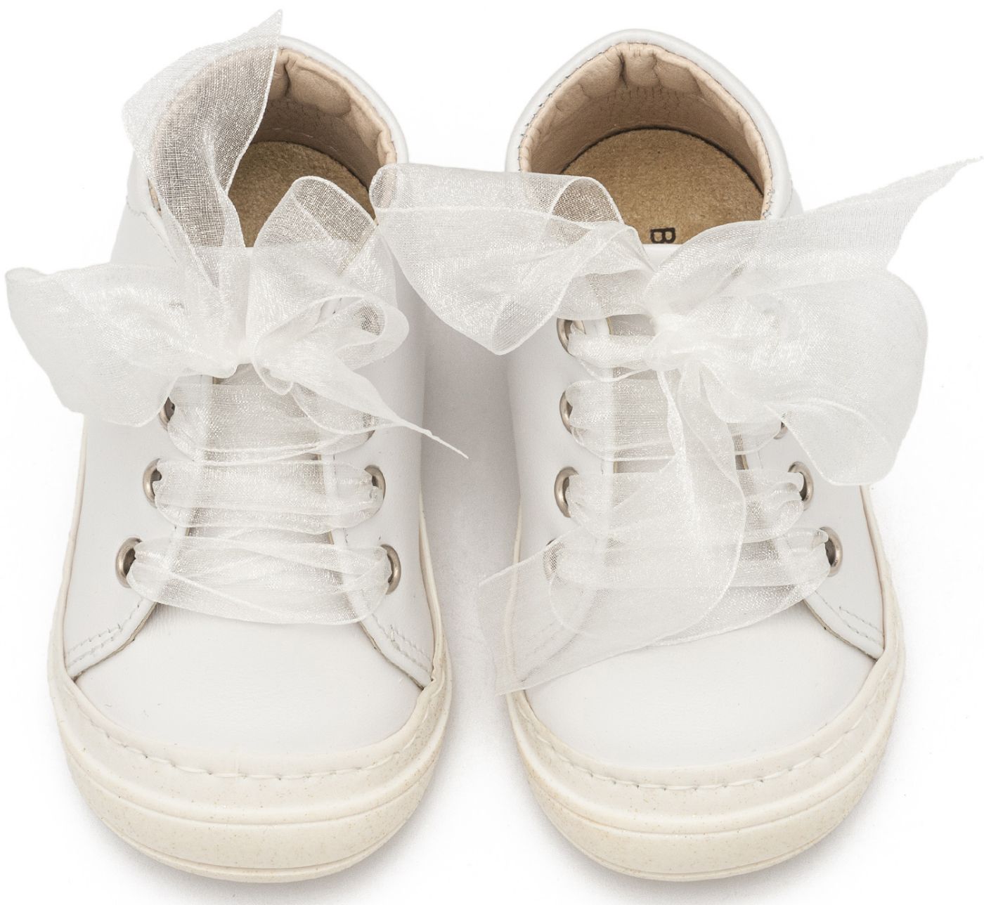 Δερμάτινο Σνίκερ με Δέσιμο Κορδέλα Οργάντζα από Δέρμα Νάπα σε Λευκό Χρώμα