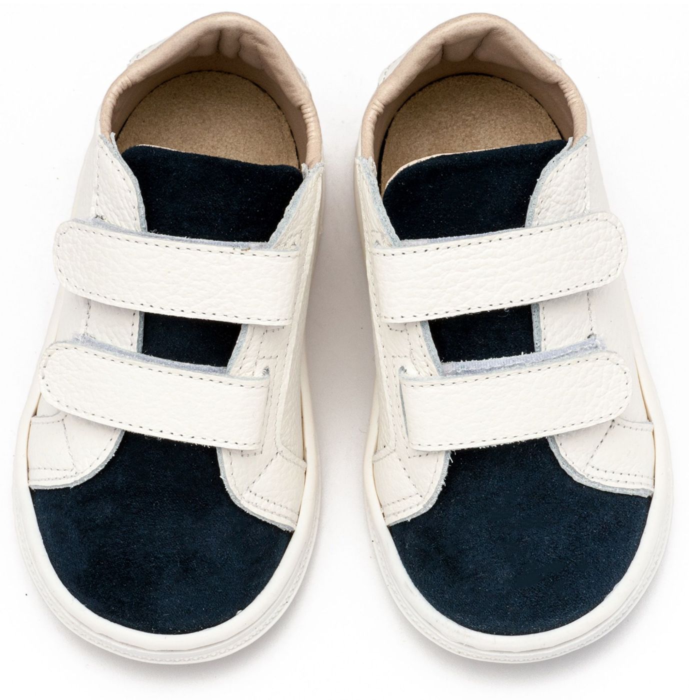 Σνίκερ από Δέρμα και Ύφασμα με Διπλή Μπαρέτα Χρατς σε Λευκό Μπλε Χρώμα