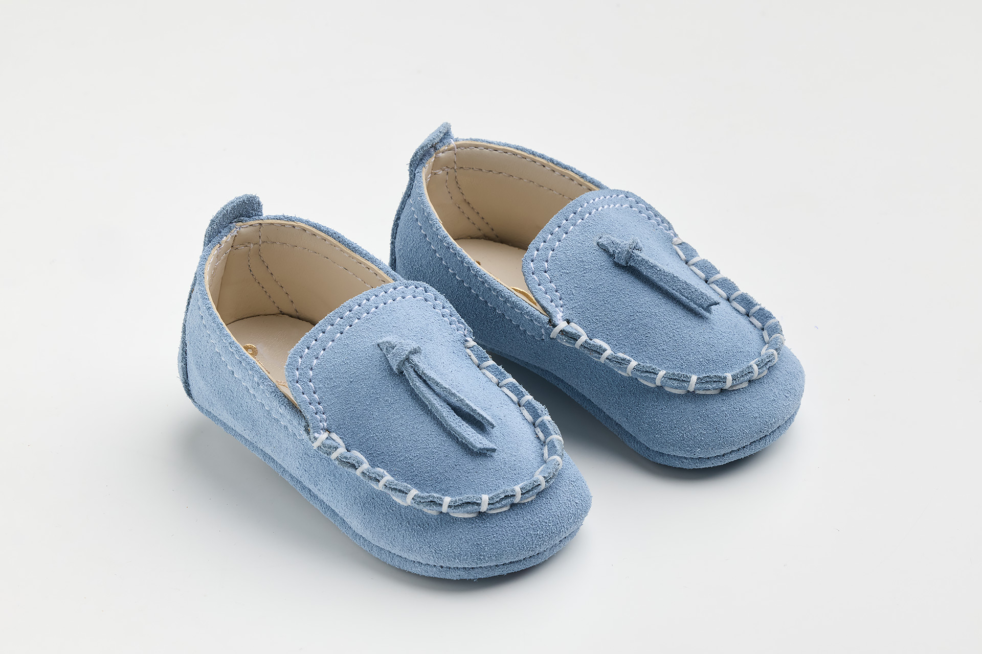 παπουτσάκι αγκαλιάς σε γαλάζιο καστόρ δέρμα