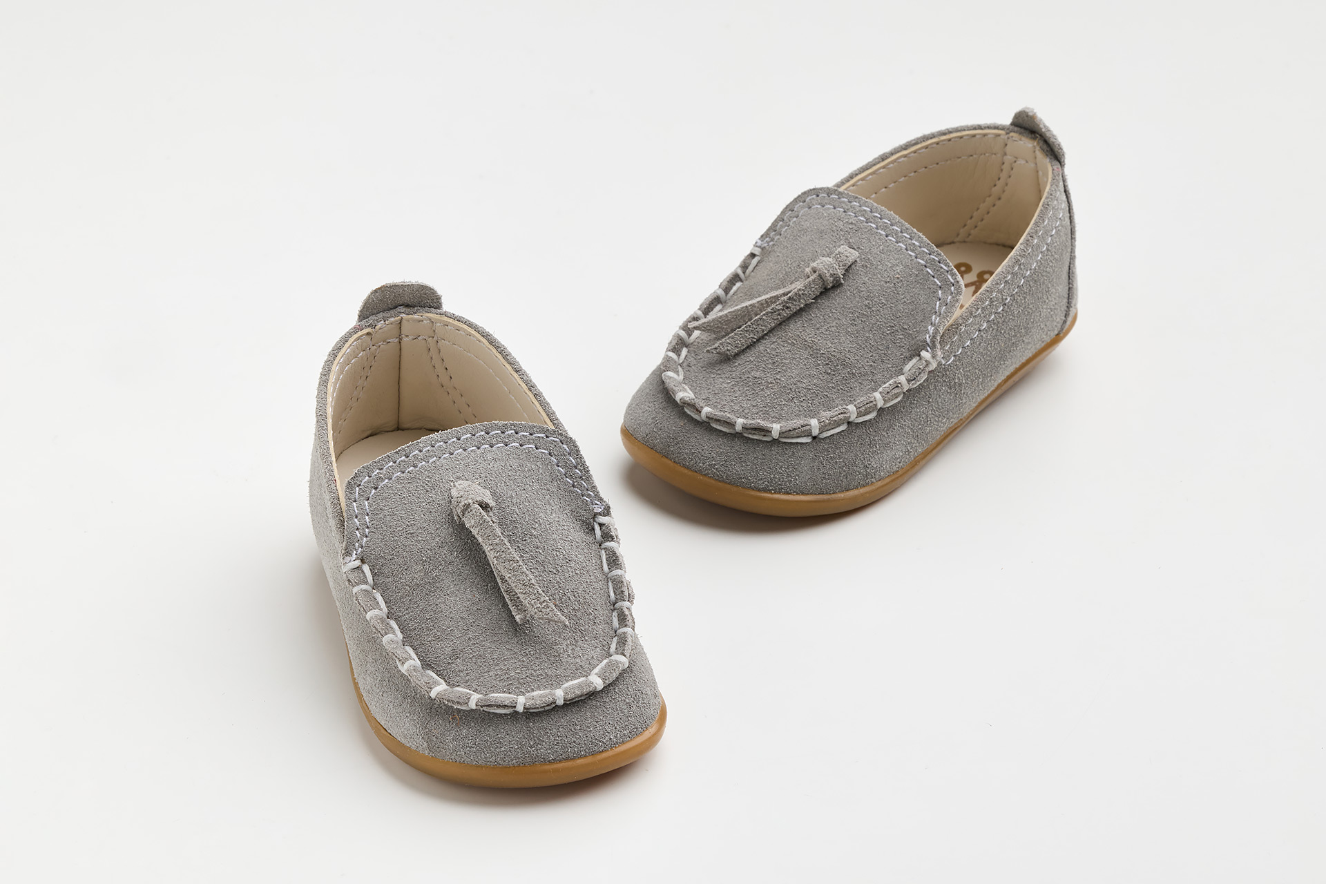 A610A - παπουτσάκι πρώτα βήματα σε γκρί καστόρ δέρμα
