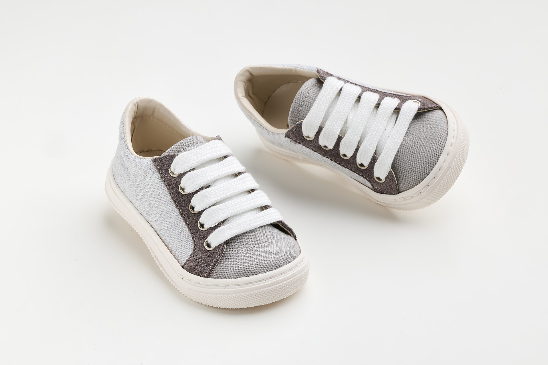 παπουτσάκι περπατήματος σε γκρι ύφασμα και γκρι καστόρ δέρμα