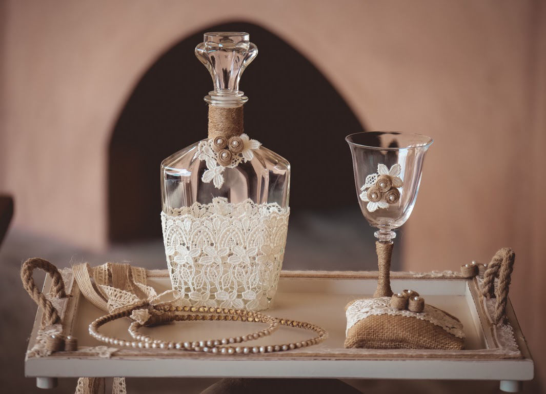Δίσκος-καράφα-ποτήρι με διακόσμηση