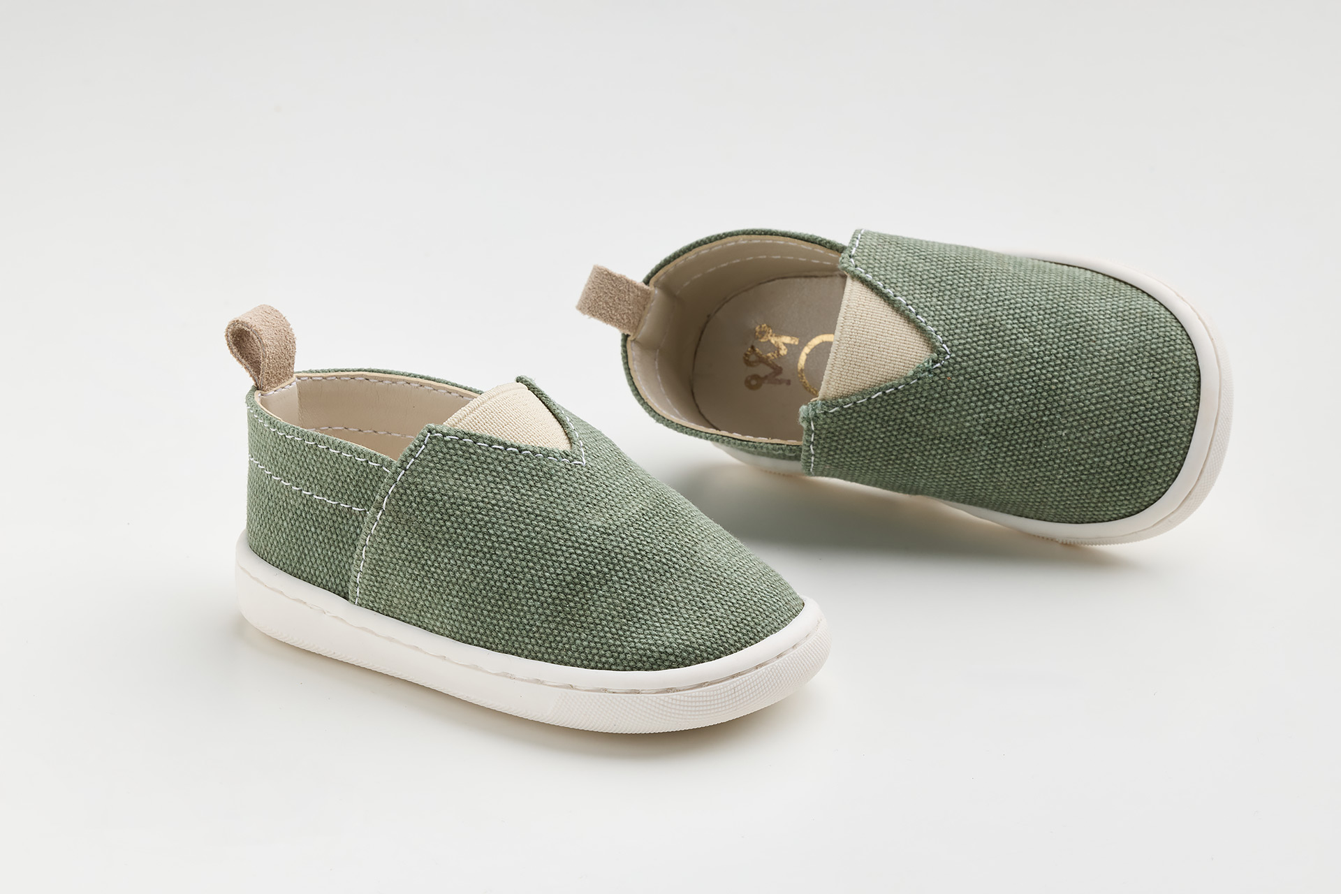 παπουτσάκι - εσπαντρίγια σε λαδί καμβά, καστόρ δέρμα και λάστιχο