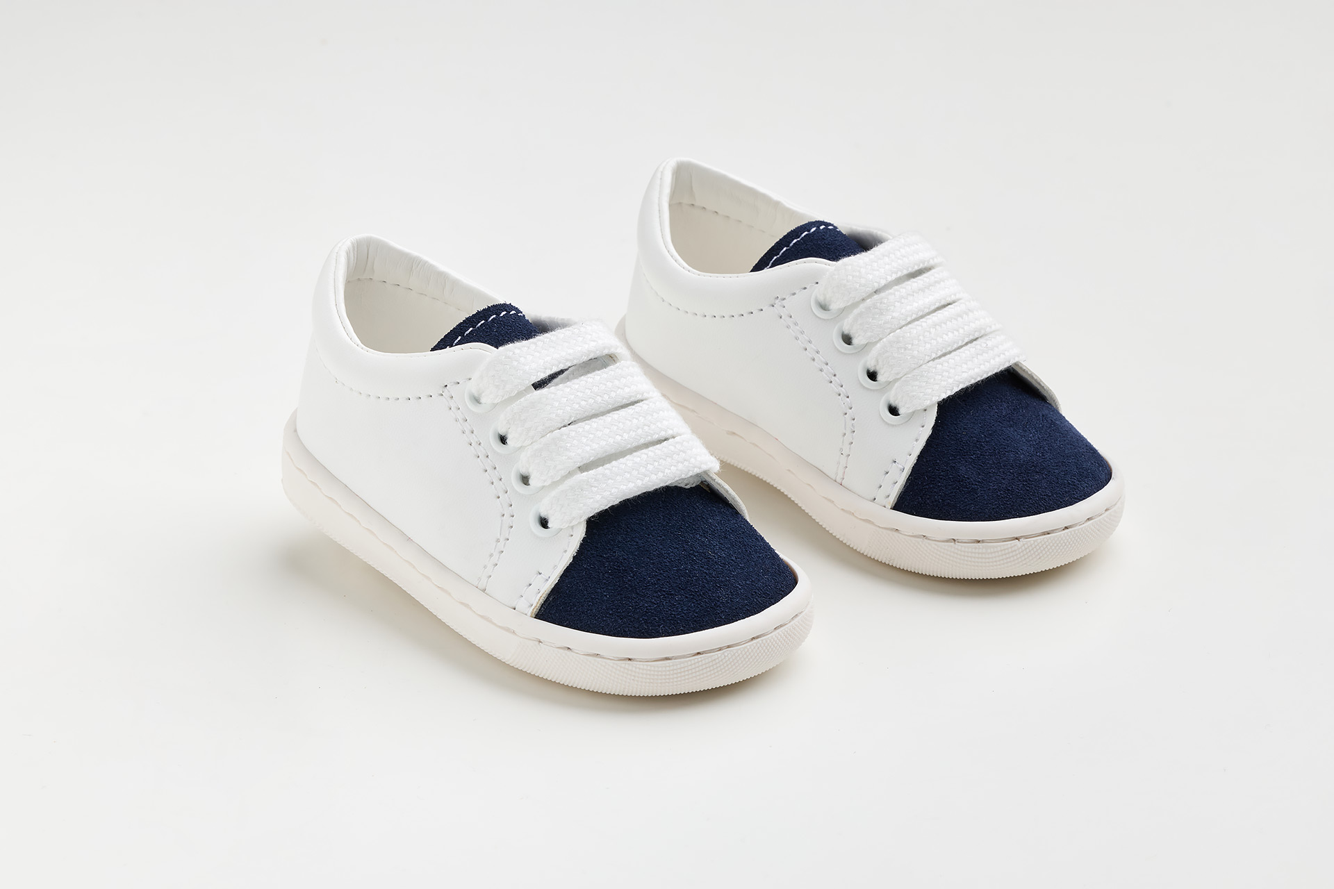 παπουτσάκι σε λευκό δέρμα και μπλε καστόρ δέρμα