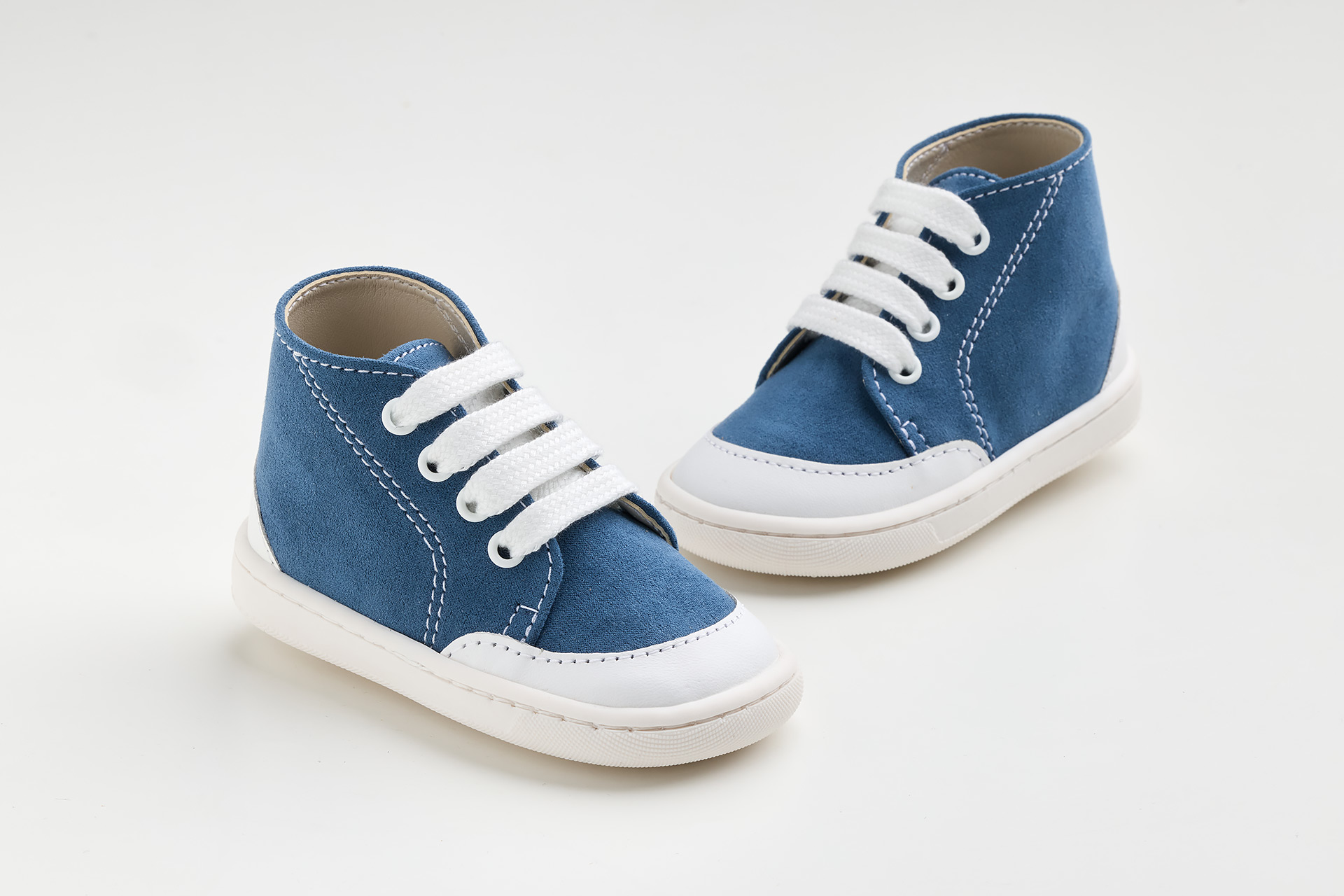 μποτάκι σε μπλε συνθετικό καστορ και λευκό λείο δέρμα