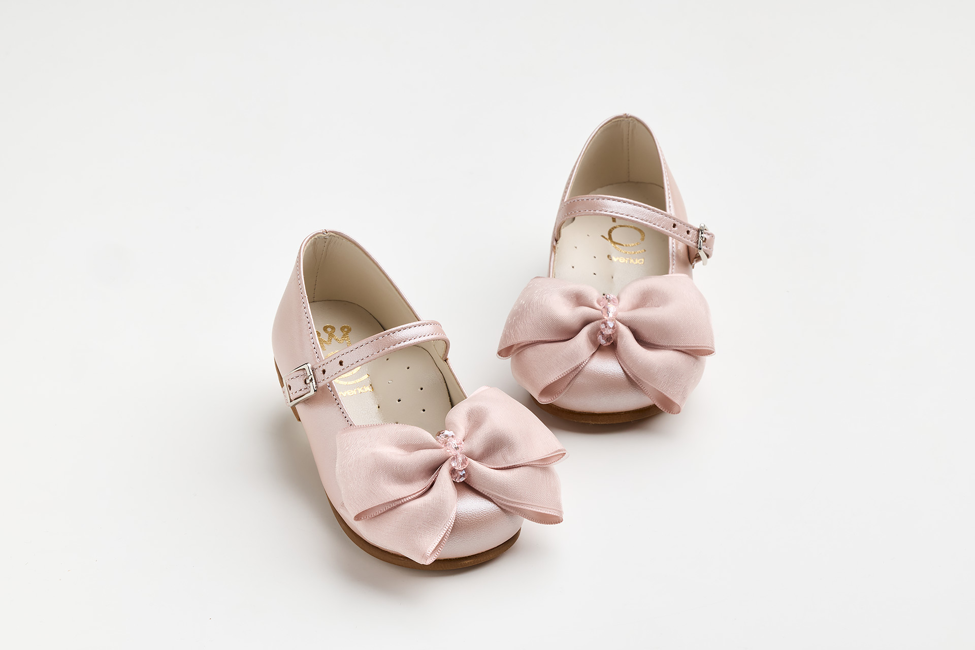 Μπαλαρίνα περπατήματος σε dusty pink δέρμα με χειροποίητο φιόγκο