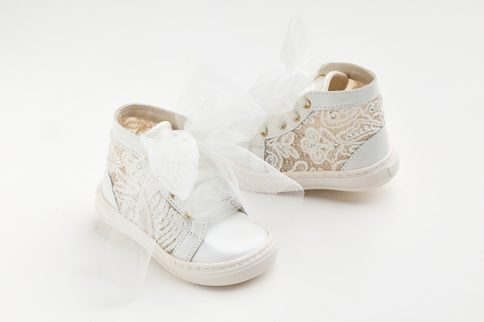 Μποτάκι περπατήματος σε λευκό δέρμα και δαντέλα με στρασακια