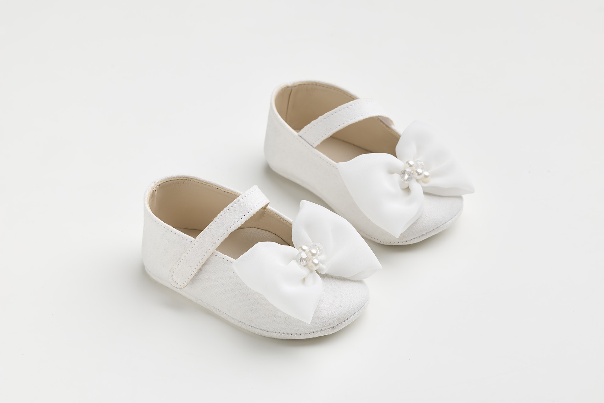 K615A - Μπαλαρίνα αγκαλιάς σε συνθετικό λευκό καστόρ με χειροποίητο φιόγκο από μουσελίνα