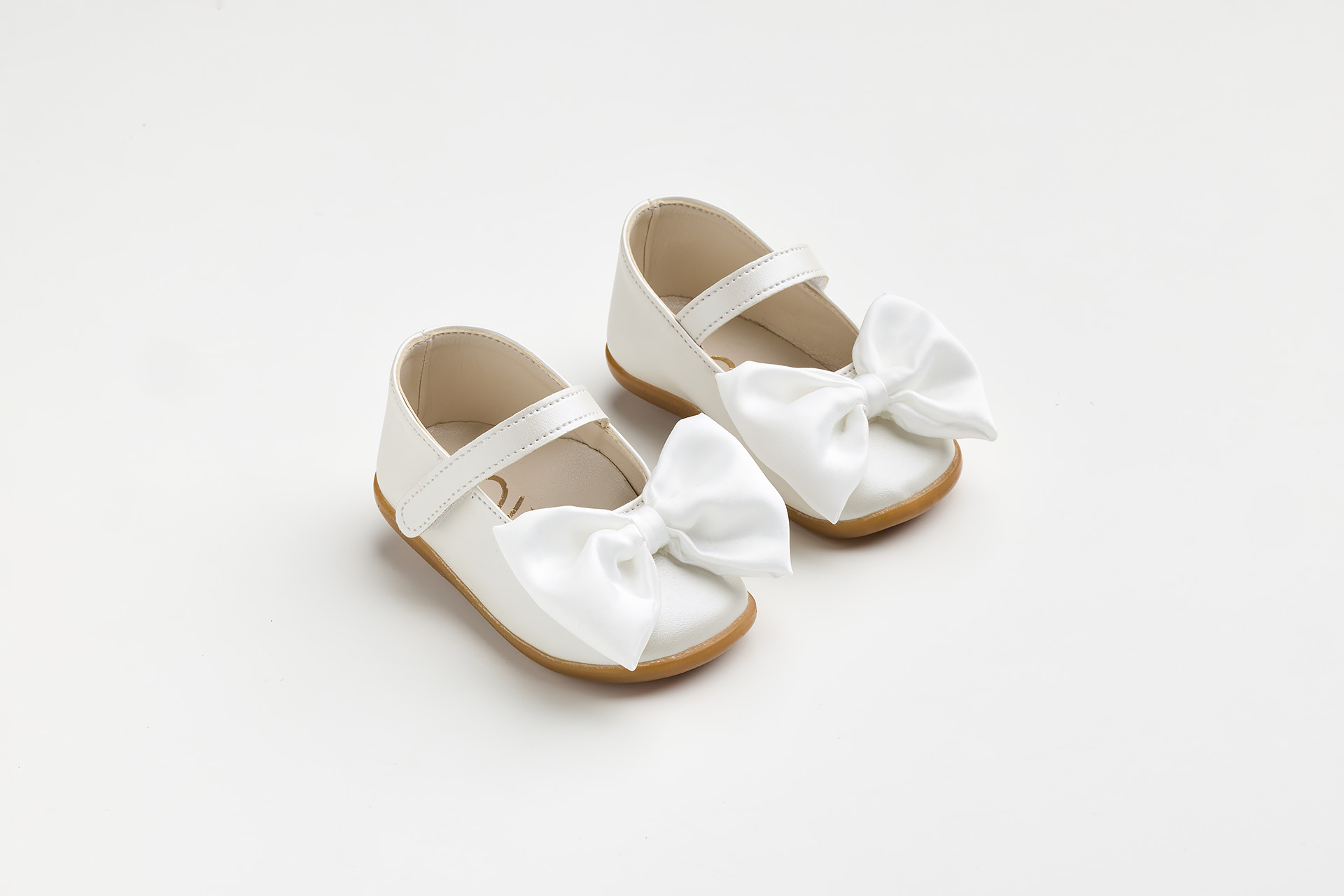 Μπαλαρίνα για τα πρώτα βήματα σε εκρού τεχνόδερμα με εκρού σατέν χειροποίητο φιόγκο