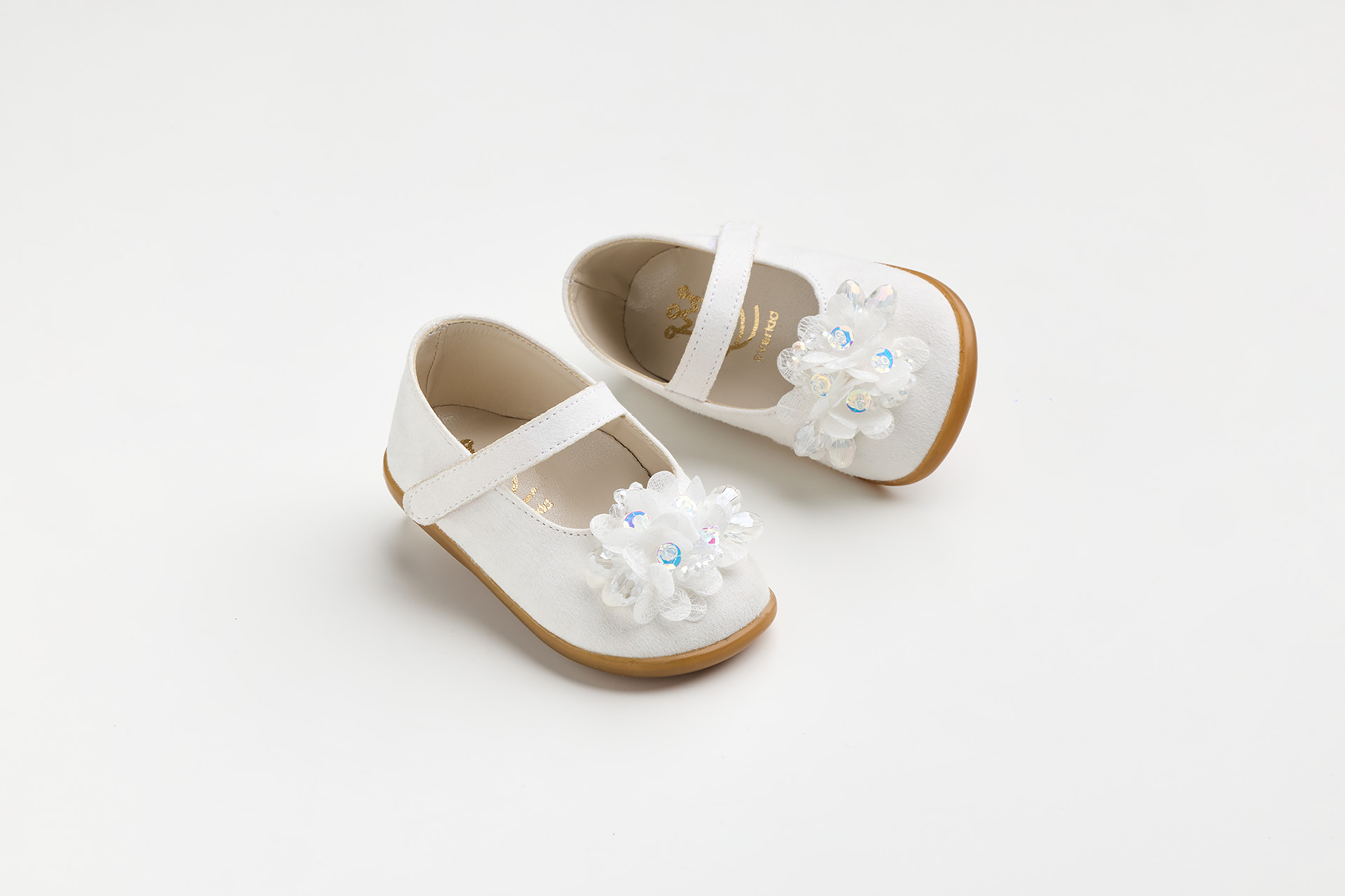 K635A - Μπαλαρίνα για τα πρώτα βήματα σε λευκό συνθετικό καστόρ διακοσμημένο με κρύσταλλα και παγιέτες