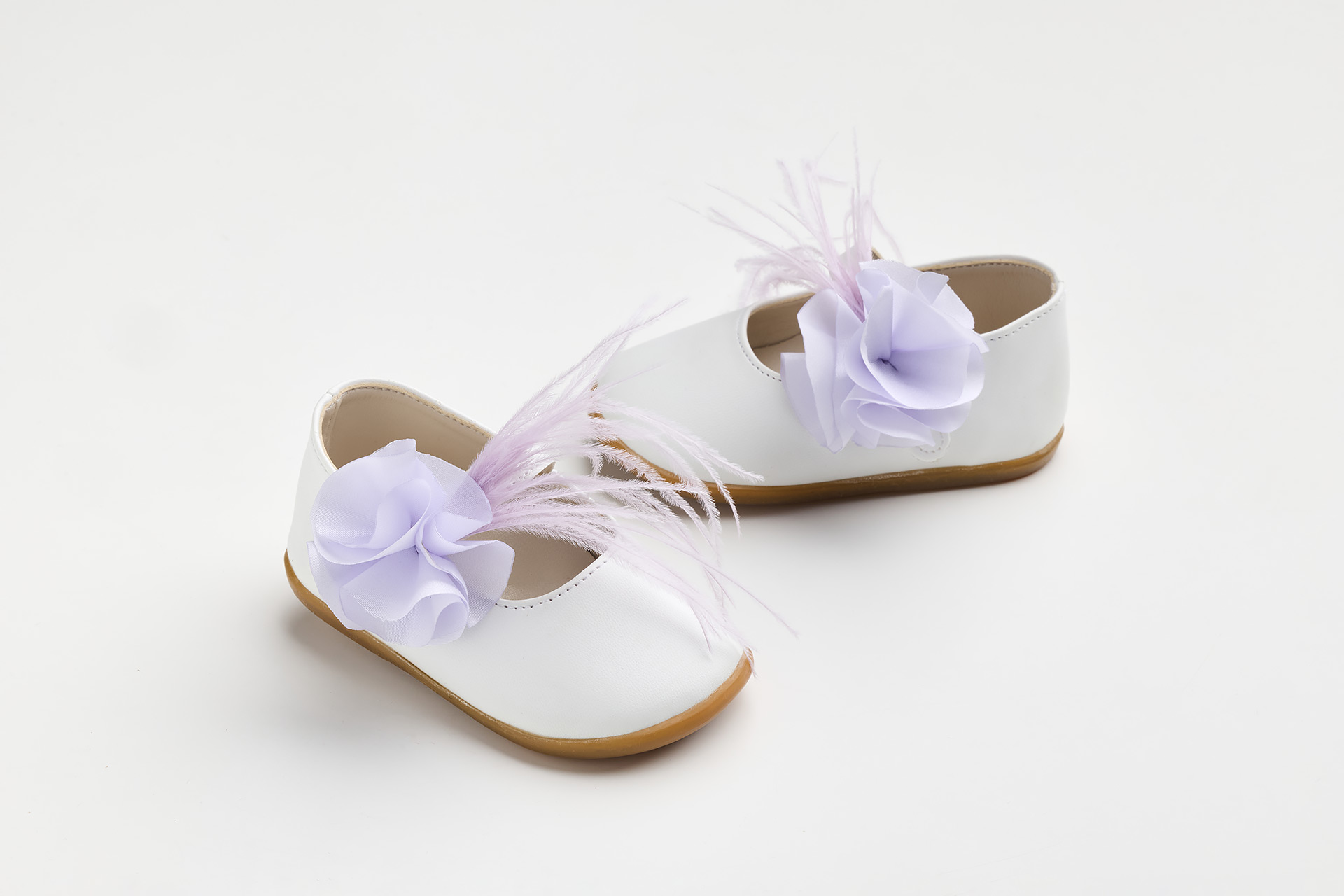 K638M - Μπαλαρίνα για τα πρώτα βήματα με χειροποίητο λιλά λουλούδι και φτερά