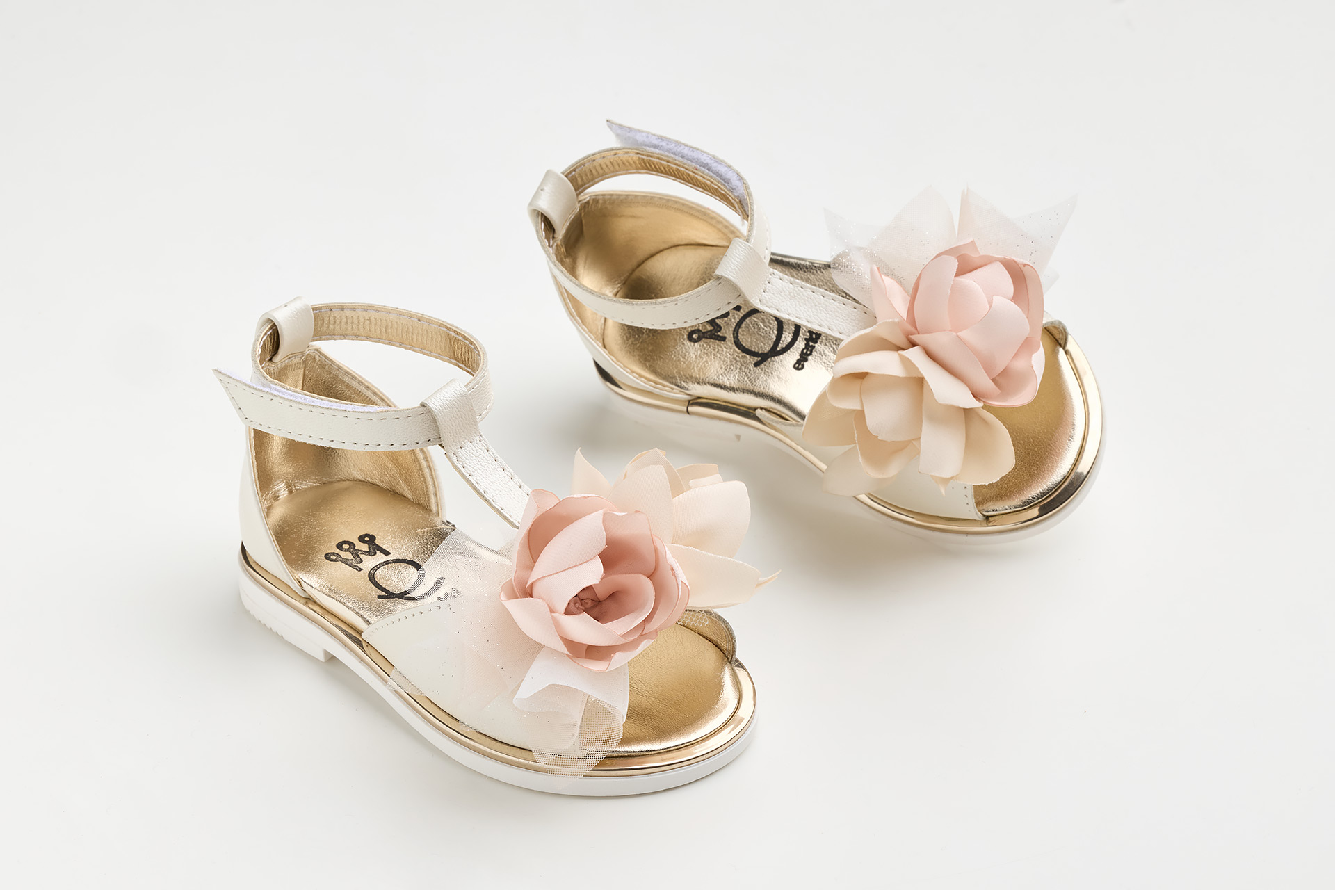 K647E - Σανδάλι περπατήματος σε εκρού δέρμα με χειροποίητο μπεζ και σάπιο μήλο διακοσμητικό