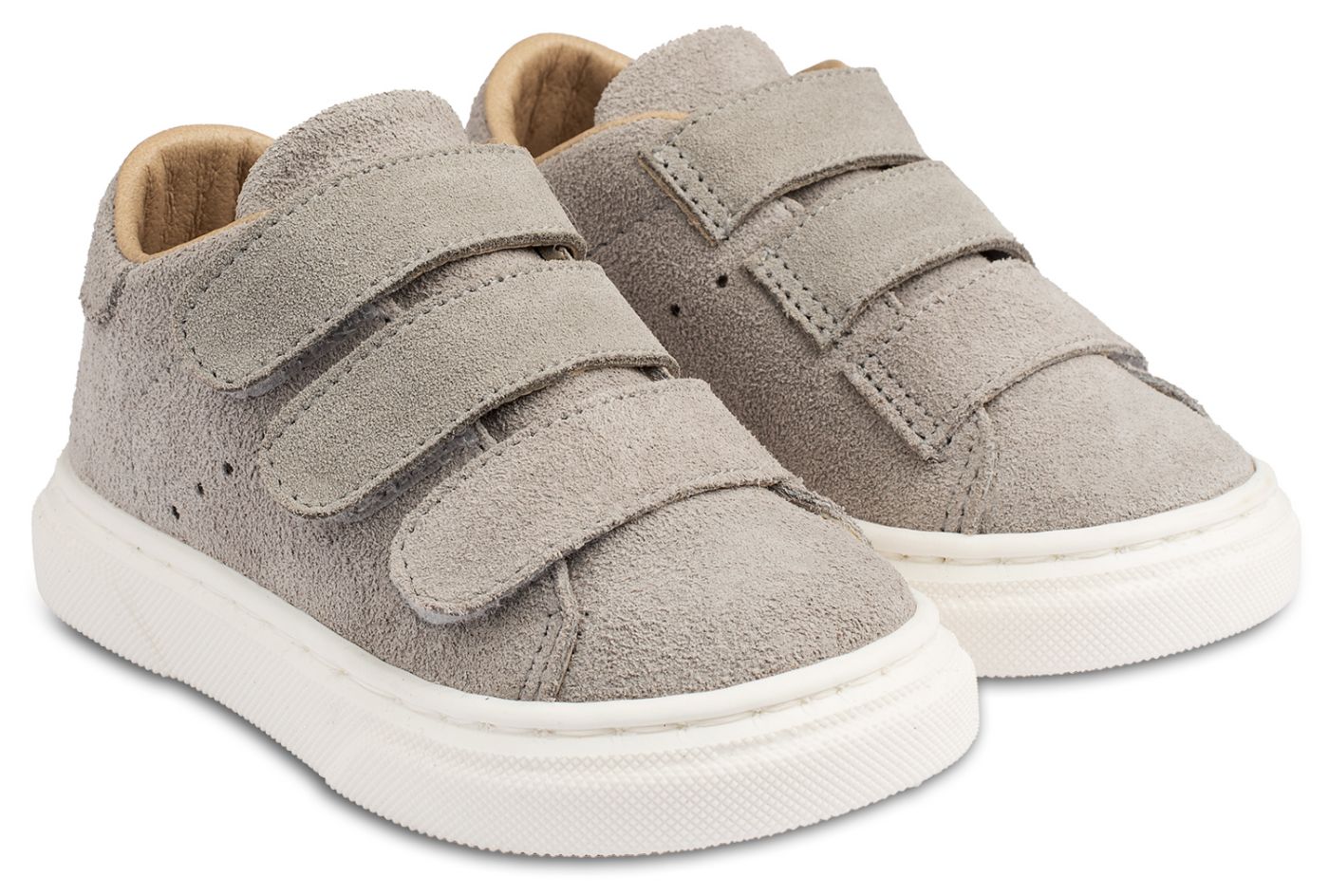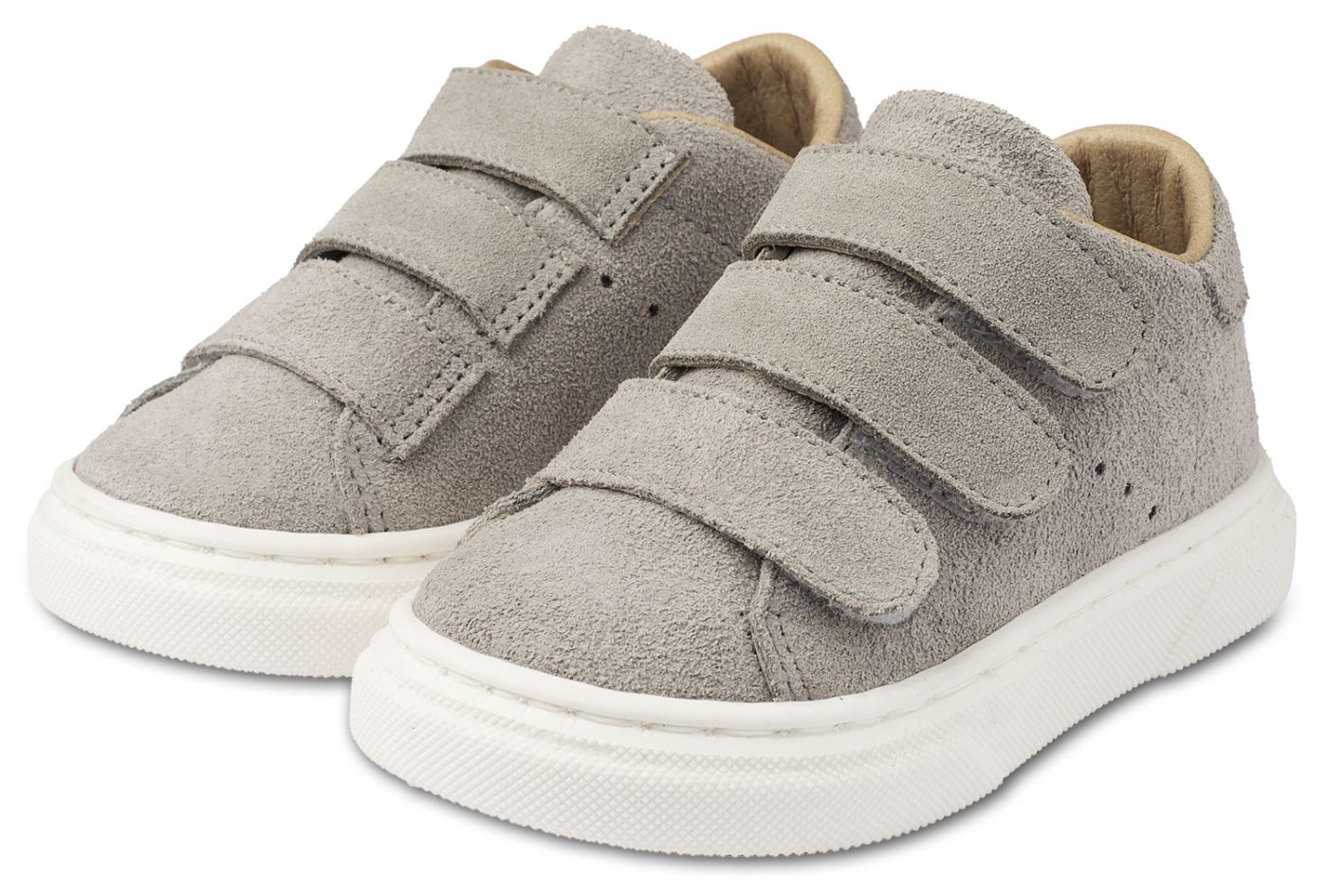 Δερμάτινο Mονόχρωμο Σνίκερ με Τριπλή Μπαρέτα Χρατς από Δέρμα Suede σε Γκρι Χρώμα