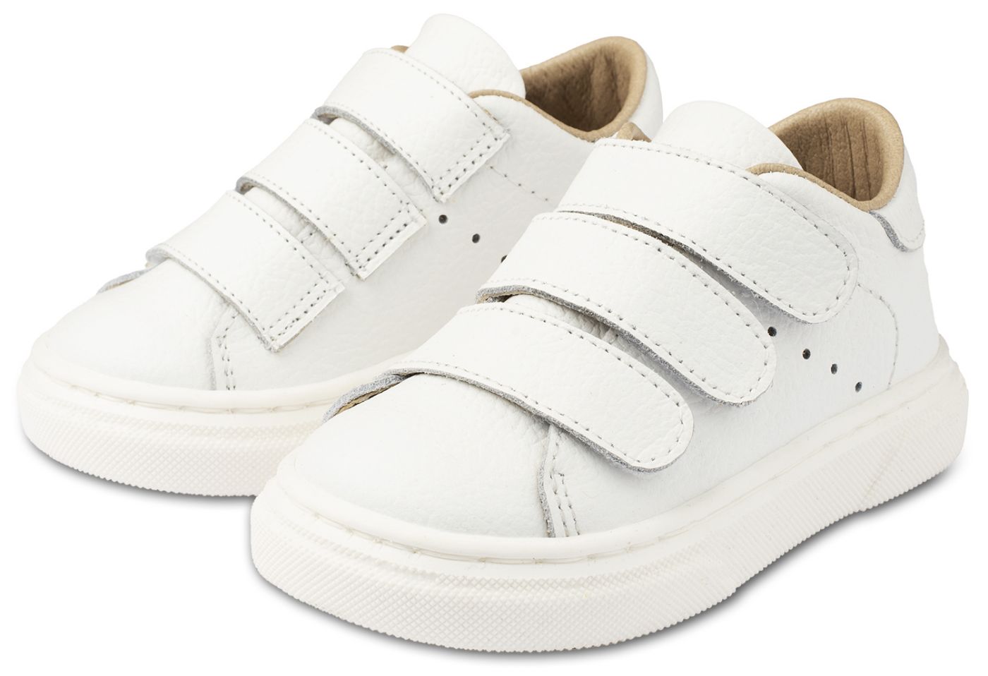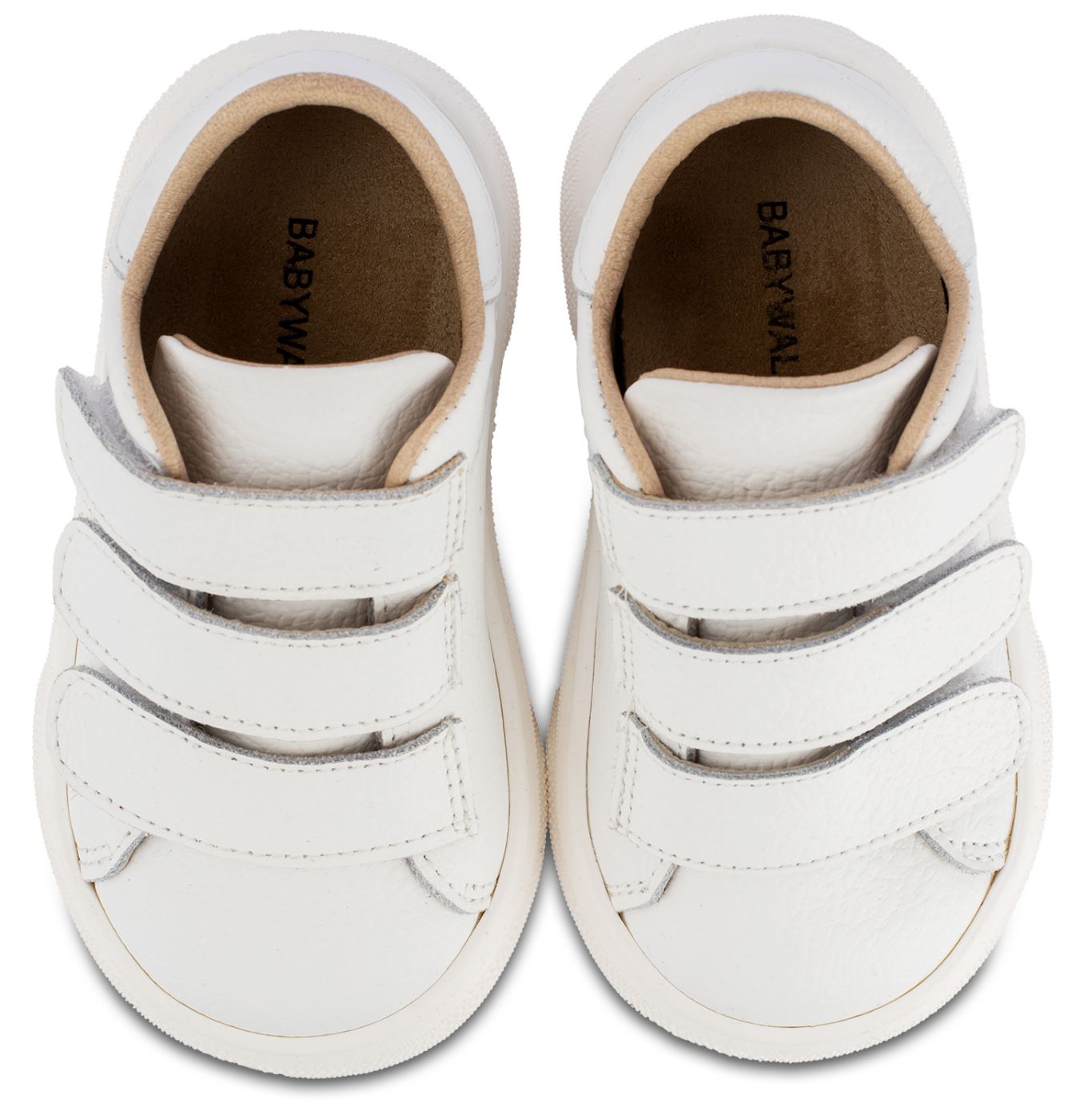 Δερμάτινο Mονόχρωμο Σνίκερ με Τριπλή Μπαρέτα Χρατς σε Λευκό Χρώμα