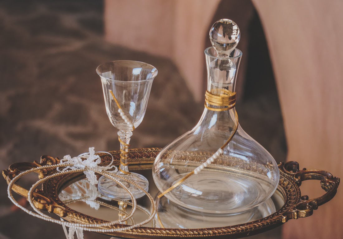 Δίσκος 59€ (διαστάσεις 49×28), κρυστάλλινη καράφα 49€ (το σχήμα της καράφας έχει αντικατασταθεί με αυτή της εικόνας 02, 03), κρυστάλλινο ποτήρι 20€. Αν θέλετε μπορείτε να επιλέξετε κουτάκι ή μαξιλαράκι για τις βέρες που θα βρείτε σε αντίστοιχη κατηγορία.
