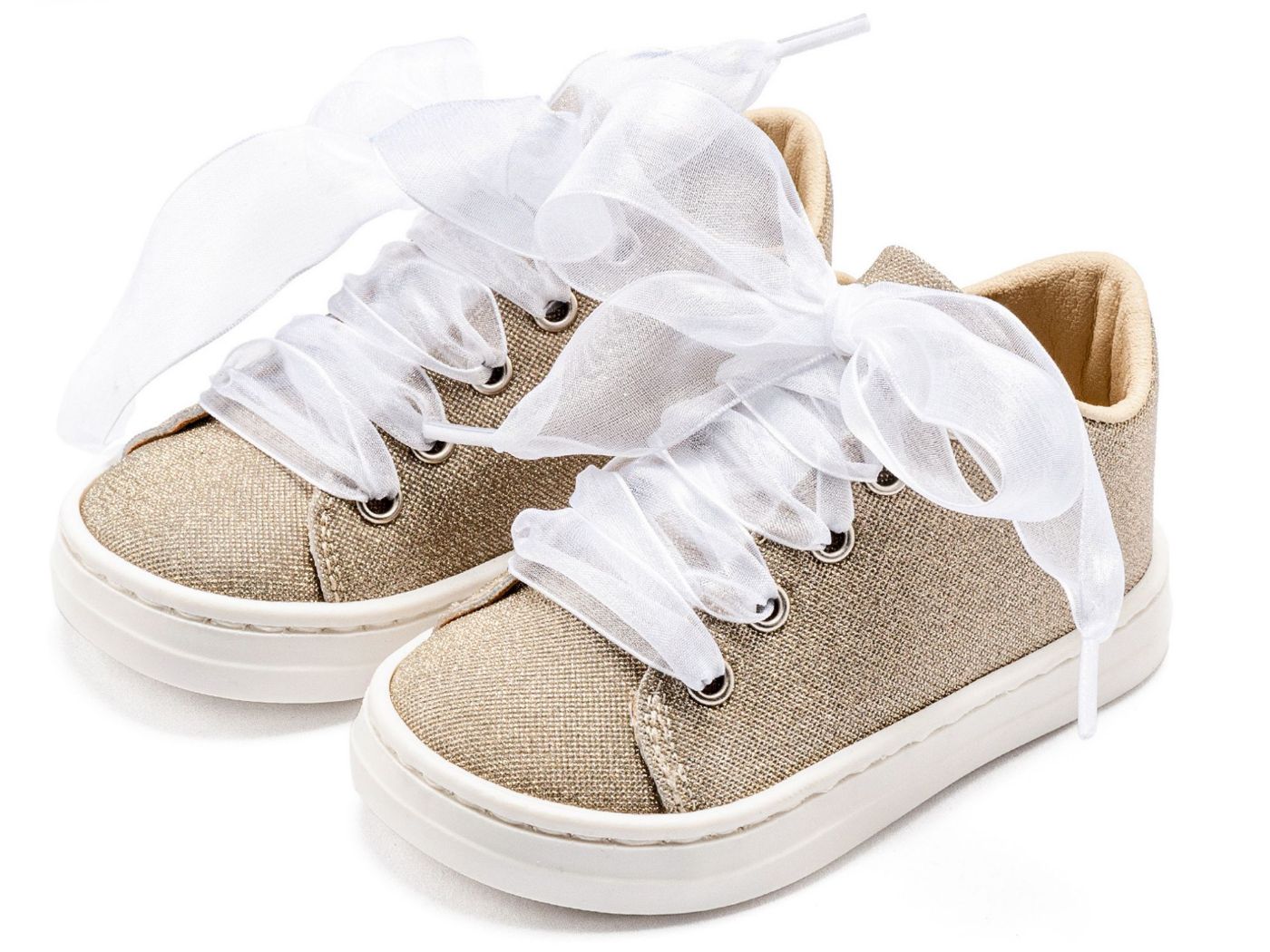 Sneaker απο Μεταλιζέ Ύφασμα και Δέσιμο Κορδέλα Οργάντζας σε Πλατίνα Χρώμα